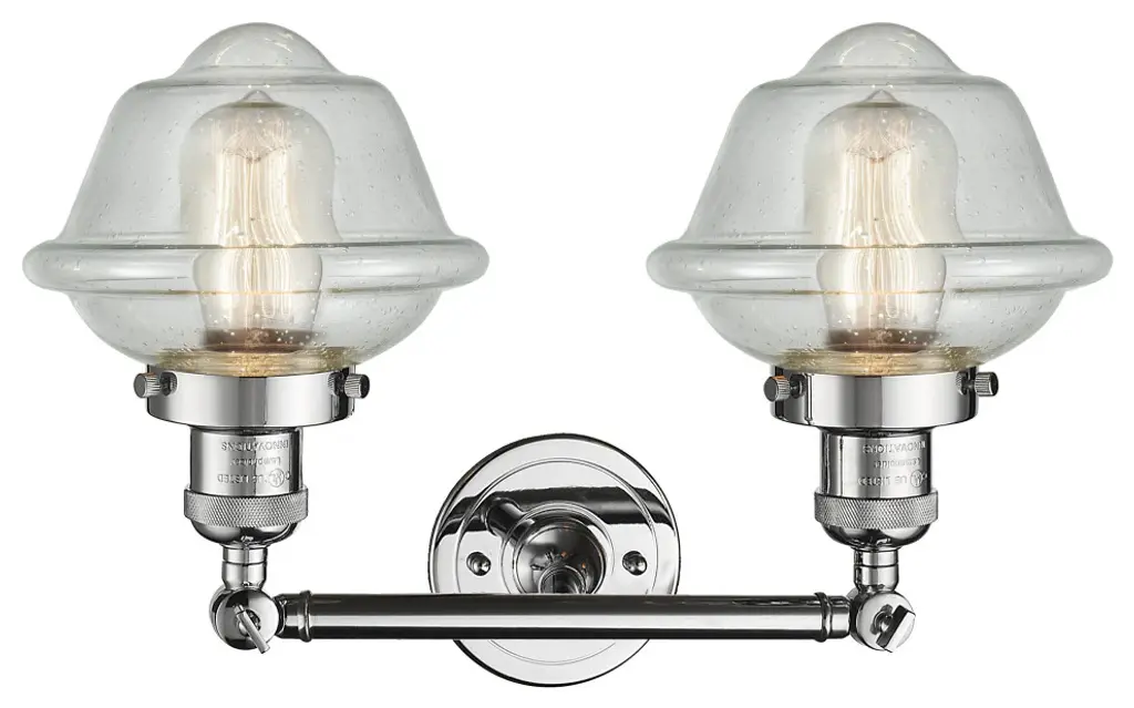 2-Light Oxford 17" Bath Fixture, Polished Chrome, Glass: Seedy