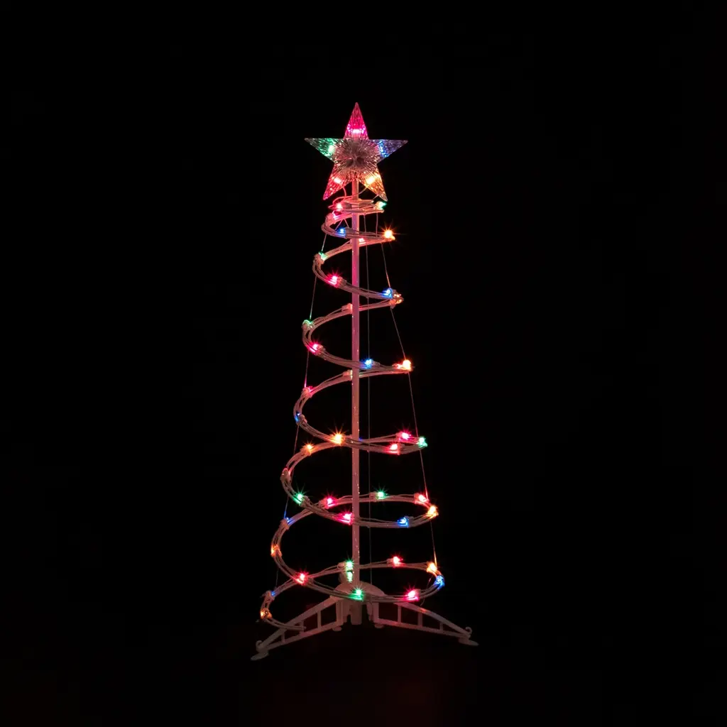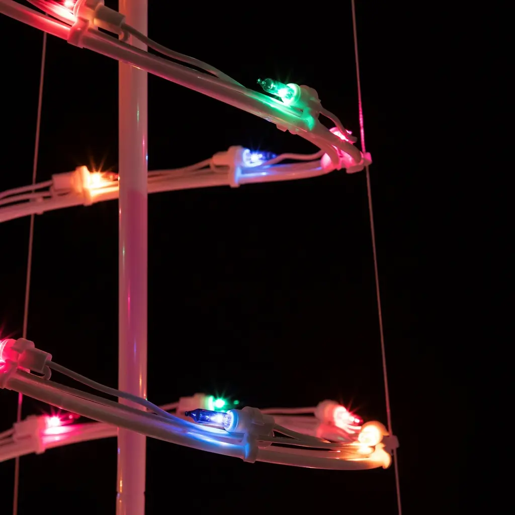 Add a little joy to your holiday display with this set of two colorful lighted outdoor trees. Our 4’ and 6’ spiral trees boost the holiday festivity with dozens of red, pink, orange, green and blue incandescent mini lights on a white coiled frame. The multicolor crystalline star tree topper enhances the fun! Featuring a white aluminum central pole and durable plastic base, our spiral tree set is easy to set up on your lawn, porch or balcony. Replaceable bulbs ensure years of enjoyment. Product Features: Light color: red, pink, orange, green and blue Number of bulbs: 80 and 150 Bulb size: mini Bulb type: incandescent Bulb spacing: 3.5"and 4" 5' white lead cord for each size Additional Product Features: Lighted crystalline star tree topper 8 and 10-piece easy assembly (including stands) UL certified and approved for indoor or outdoor use Includes pole with stand and ground stakes Contains 1 plug with end connector, which allows you to connect multiple items together (not to exceed 210 watts) Comes with replacement bulbs and spare fuse Lights are replaceable and interchangeable Wire gauge: 22 120 volts, 60 hertz, .26 amps, 31.2 watts 120 volts, 60 hertz, .51 amps, 61.2 watts Dimensions: 4’ and 6' high (from the base of the stand to the top of the trees) 4' tree has a 16” base diameter (at the widest point) 6' tree has a 19” base diameter (at the widest point) Star tree topper dimensions for the 4' tree: 7" high x 7" wide Star tree topper dimensions for the 6' tree: 8.5" high x 8.5" wide Material(s): glass bulbs/wire/plastic