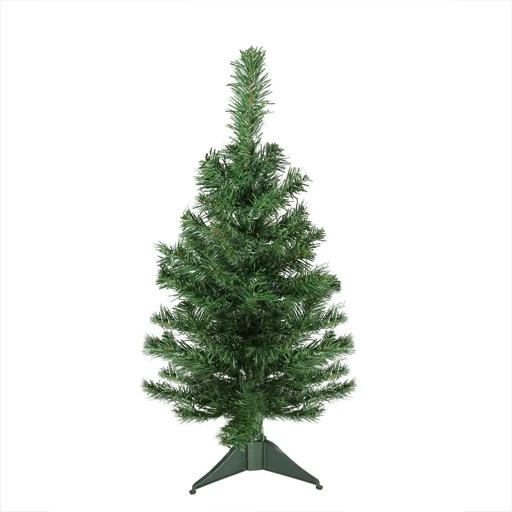 This beautiful tree features a mix of dark green and light green pine needles to create that realistic look without all of the hassles of a real tree! This traditional style tree is in a miniature size perfect for an apartment college dorm tabletop or mantelpiece! Product Features: Unlit. 60 branch tips. 1.75" wide branch tips. Medium profile tree. Recommended for indoor use only. 2-piece easy assembly (including stand). Comes with a FREE green plastic tree stand. Dimensions: 2' high (from the base of the stand to the top of the tree). 12" base diameter (at the widest point). Material(s): PVC/wire/plastic. Note: Branches are compressed for shipment and need to be fluffed out upon arrival to look like the photo.