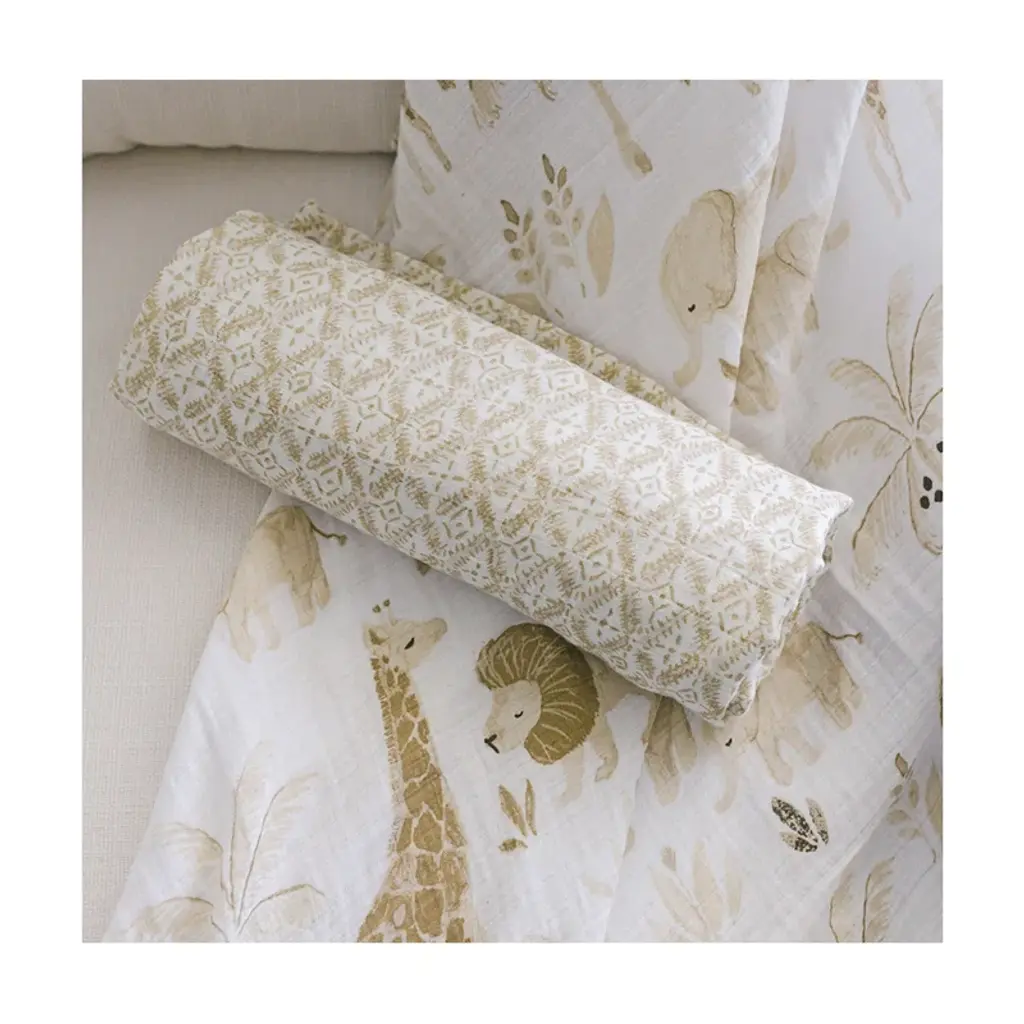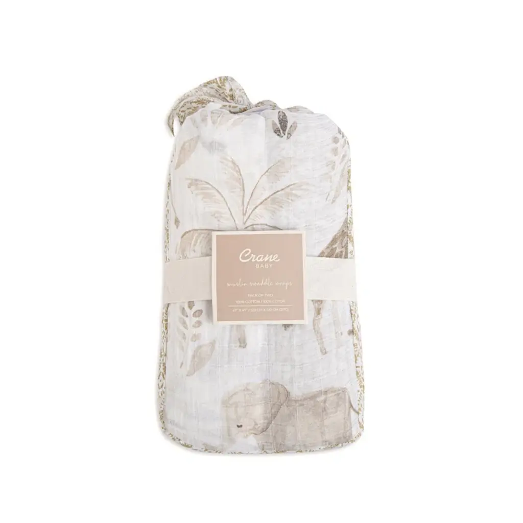 2-Pack 100% Cotton Swaddle, Safari Animal Pattern, Soft And Durable, By Crane Baby