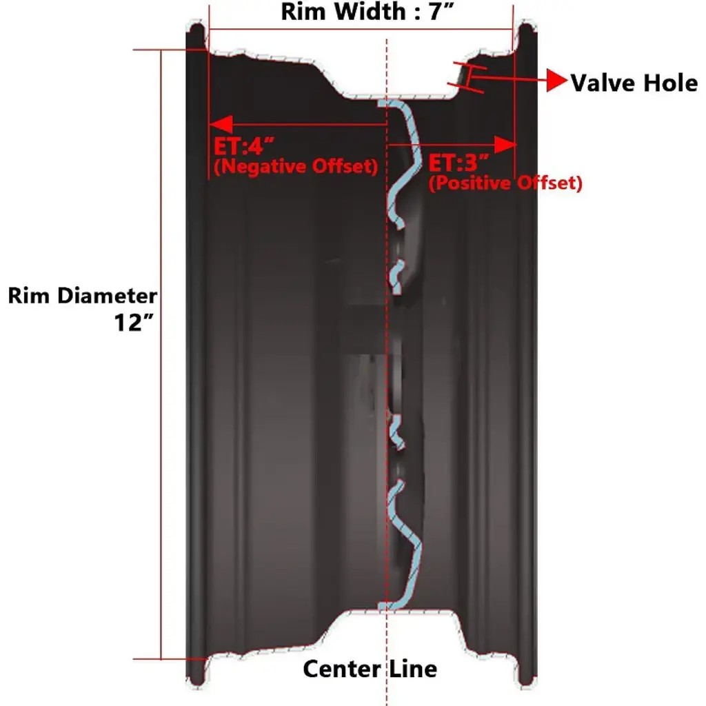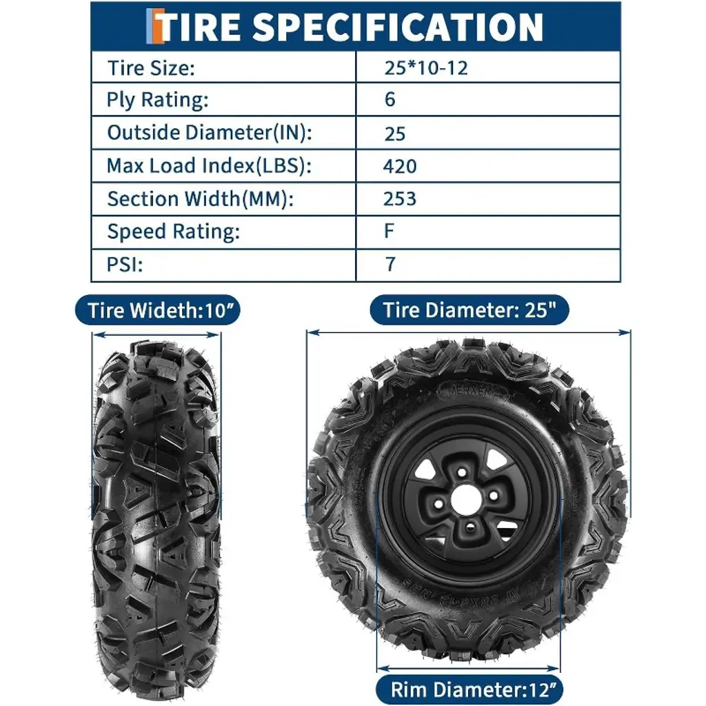 2-pack 25x10-12 Atv/utv Tire & Wheel Set, 6-ply All-terrain, 4X156 Bolt Pattern, 4+3 Offset, Reinforced Sidewalls For Mud/trails
