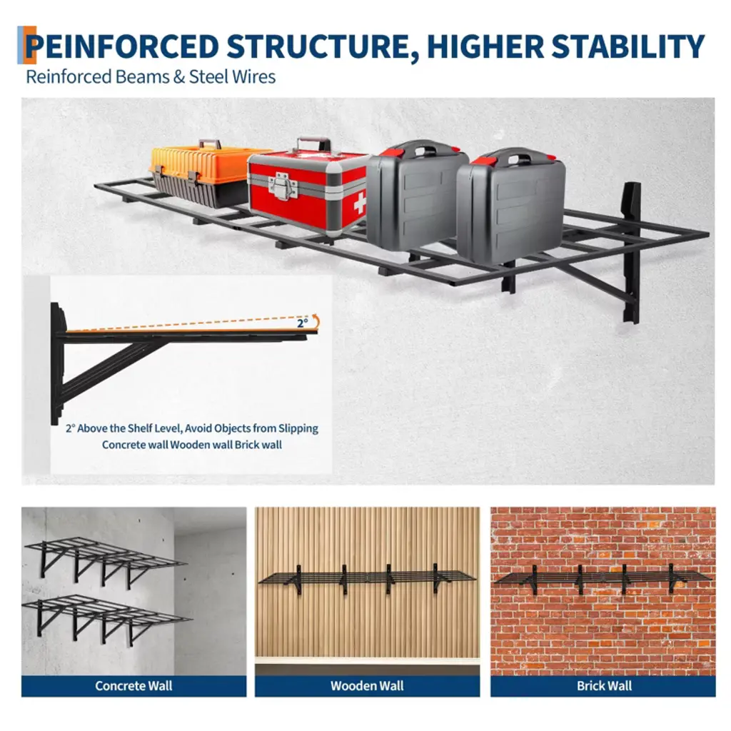 2 Pack 2X6ft Heavy Duty Wall Mount Shelves - 1600lbs Capacity Folding Storage Racks, Black Metal Garage Shelving For Warehouse Laundry