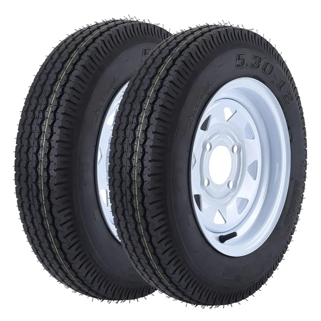 2 Pack 480-12 4.80x12 4.80-12 4.8-12 Trailer Tires With 12'' Rims, 5 Lug On 4.5'', Load Range C 6Pr