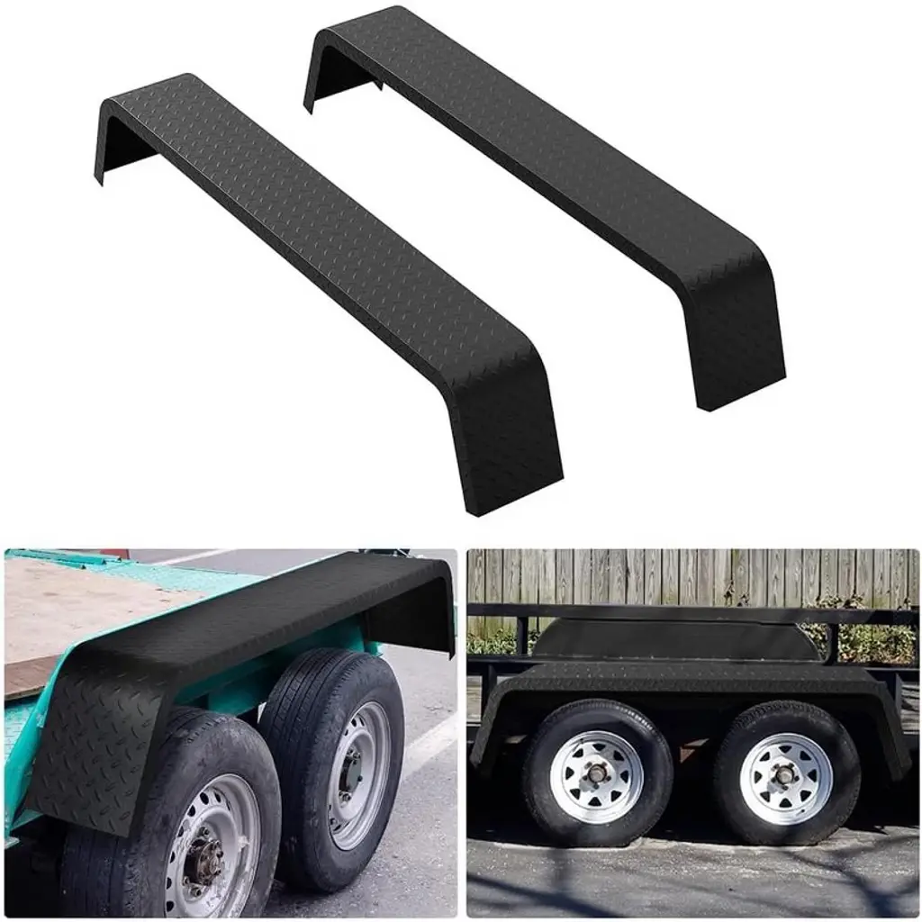 Measuring 32"x13"x9", these fenders are tailored to seamlessly fit tandem axle trailers with tire sizes ranging from 14" to 16", ensuring easy installation and a precise fit for your trailer. Constructed from high-quality, heavy-duty steel, our trailer fenders are built for durability and longevity. Unlike conventional fenders, both sides of our fenders can serve as welding surfaces, providing additional protection for tires against road debris and equipment impact, such as sweeping deck tracks or bobcat deck tracks. To further enhance durability and rust prevention, we have incorporated an electrophoretic surface treatment into our fenders, ensuring resistance to various harsh environments and extending their lifespan.