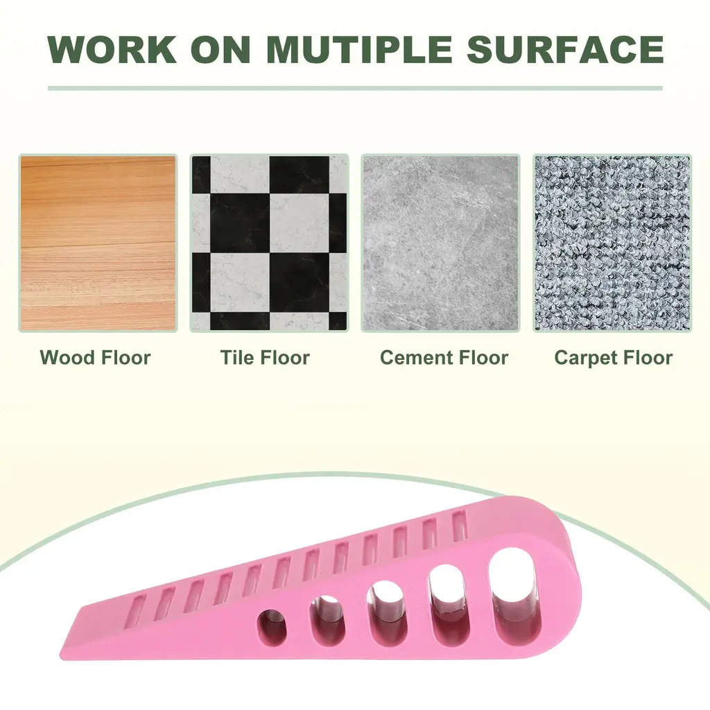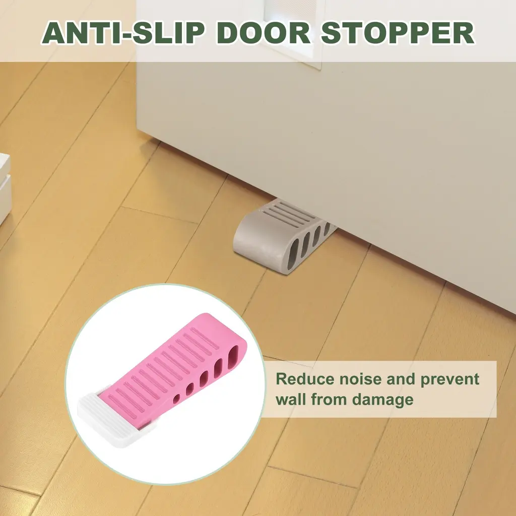Description :Anti-Slip Design - The door stopper has a double-sided anti-slip function, with a horizontal stripe design on the surface, which increases the friction with the door and can easily fix the position of the door. Stackable design and hollow design make it suitable for a wider range of gaps, and evenly distributed force, raises its grip and is not easy to move.Material - The door stoppers for the bottom of the door are made of TPR, soft and non-slip, they will not scratch the surface of the floor or door; It has elasticity and can adapt to larger gaps, and can also be used on floors of various materials (wooden boards, ceramic tiles, and so on), and the trapezoidal design also provides cushioning force when closing the door.Easy to Use and Store - Place the door stopper on the floor at a suitable distance, which is easy to replace and does not affect cleaning. Comes with a holder that you can stick to the door or wall for storage the door stopper when not in use; In addition to being used as a buffer and fixing when opening the door, the door stopper can also be used when closing the door to stop it from opening from the outside.Wide Applications - These door stops can be applied to various occasions, such as offices, homes, shops, hotels, etc; These door stops ensure that doors do not accidentally slip and close, so you don't have to worry about the door suddenly closing in winds, protecting the door and walls.Specifications:Material: TPRColor: BlackTotal Size: 125 mm x 40 mm x 30 mm / 4.92 Inch x 1.57 Inch x 1.18 Inch (L*W*H)Fit for distances with door gaps: More than 30 mm / 1.18 InchPackage Content:2 Pcs x Door Stoppers with Holder