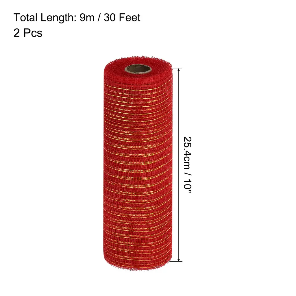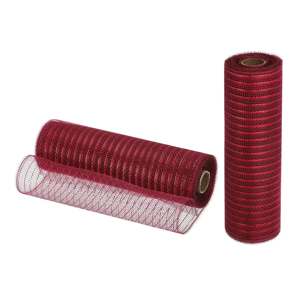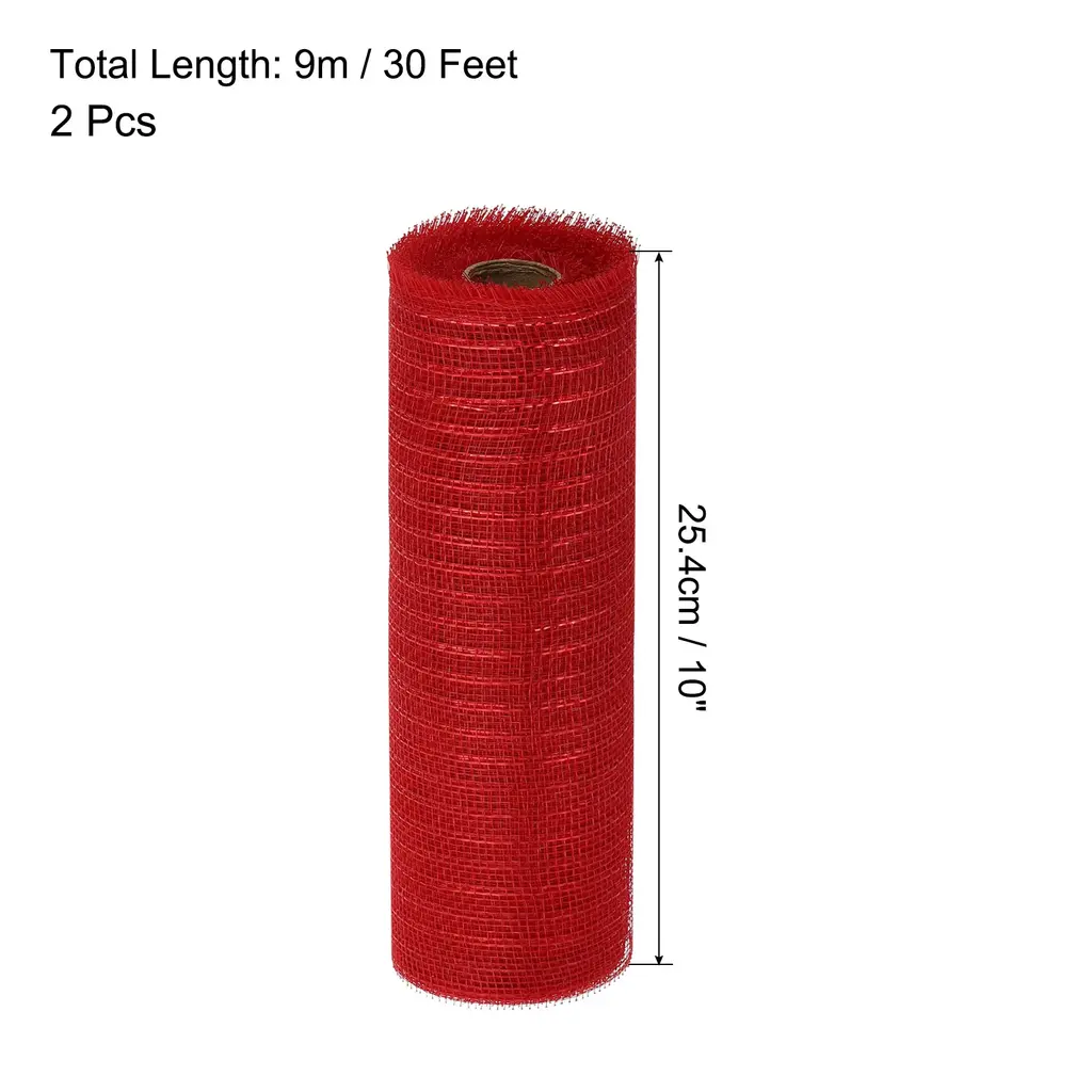 What is this?The burlap mesh is widely used for wreaths, Christmas trees, bow making, flower arrangements, gift wrapping, etc at Easter, Weddings, Christmas, Halloween, Thanksgiving, Anniversaries, Celebration Parties, etc.What will I get?The burlap mesh provides here, is in size of: Total Length: 9m / 30 Feet; Width: 25.4cm / 10 Inch; Color: Burgundy with Red Foil; In the package of 2 Roll x Burlap MeshIs there any advantages of the product?The burlap mesh is made of polypropylene material which is durable, reusable, waterproof, and can be used for a long time.Flexible materials allow you to bend, stretch, and shape easily according to your needs.Vibrant colors and great texture will add beauty and elegance to your creation.How to use it?Use your imagination, you can use it to decorate anything. You can use it in flower packaging, Christmas tree decorating, clothing, event decoration, and festival decoration.What should I notice? Due to the color differences between different displays, the actual color may vary slightly.