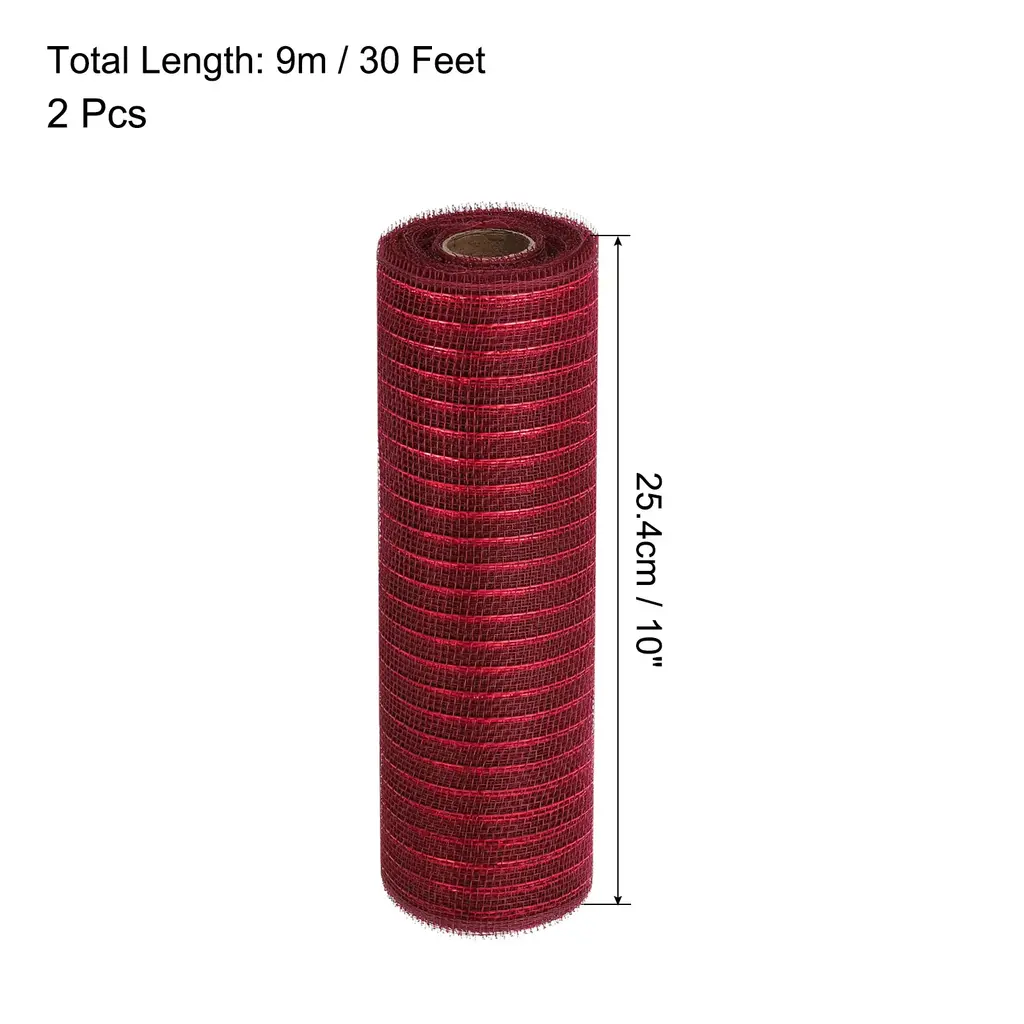 2 Pcs 10" X 30feet Pp Decorative Mesh Ribbon, Burgundy With Foil - Green/red