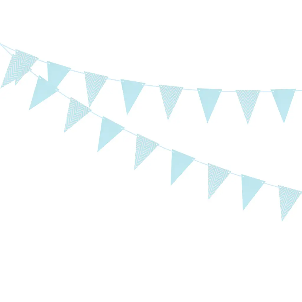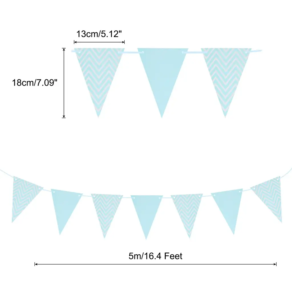 What is this?This pennant banner is mainly used for party decoration, you can hang or stick these decorative ribbons on the wall, window, door or shelf to add a different atmosphere to your party, mainly used for birthdays, weddings, Christmas, Easter, masquerade, graduation party and other partiesWhat will I get?Material: PaperColor:BlueFlag Quantity:12Hanging Length: 5m/16.4 FeetTriangle size:13*18cm / 5.12 x 7.09 inch(W*L)Package content:2 Pcs x Triangle HangingIs there any advantage of the product?1. This pennant banner flag is made of paper, not easy to bend and break, and can be repeated. After the party is over,just take it off and fold it back.2. Pennant banner flags string has solid color, you can DIY draw any pattern you want on the banner, adding a variety of decorations to your party.3. These triangle bunting flags are very easy to use, strong rope, so that you will not fall off easily even if you hang it outdoors, you can hang it on any decorative place you wantHow to use it?Unfold the triangle bunting flags , and then tie the ropes at both ends to a fixed positionWhat should I notice?Tips: please confirm the length before you buy.