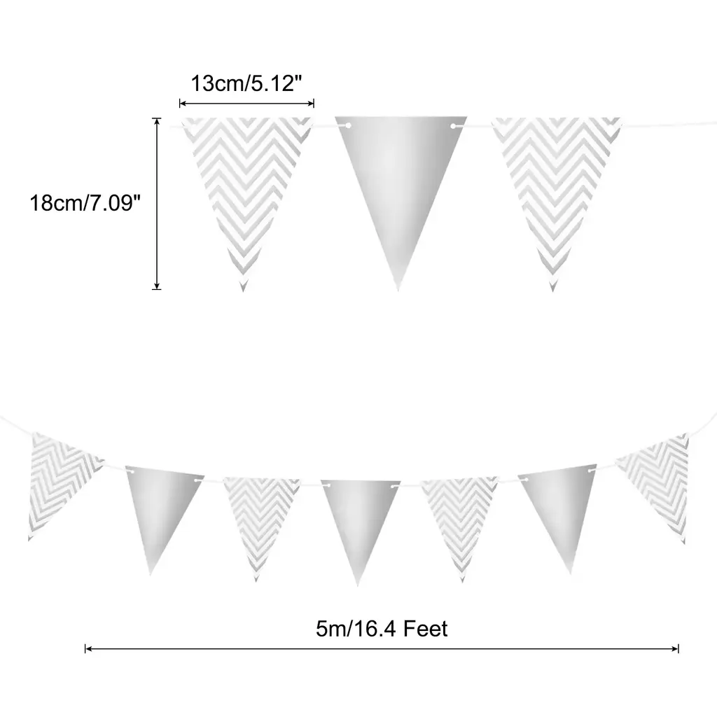 2 Pcs 16.4 Feet Pennant Banner Flags String Triangle Hanging - Silver