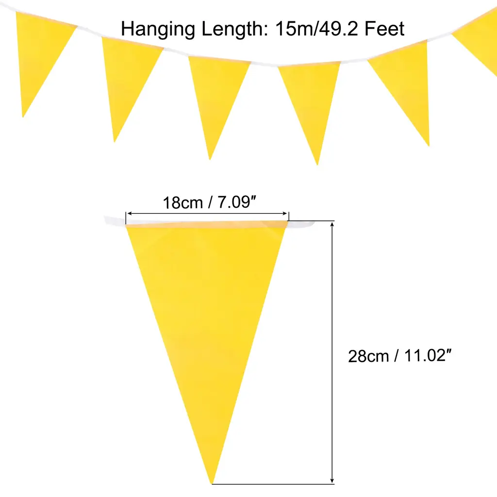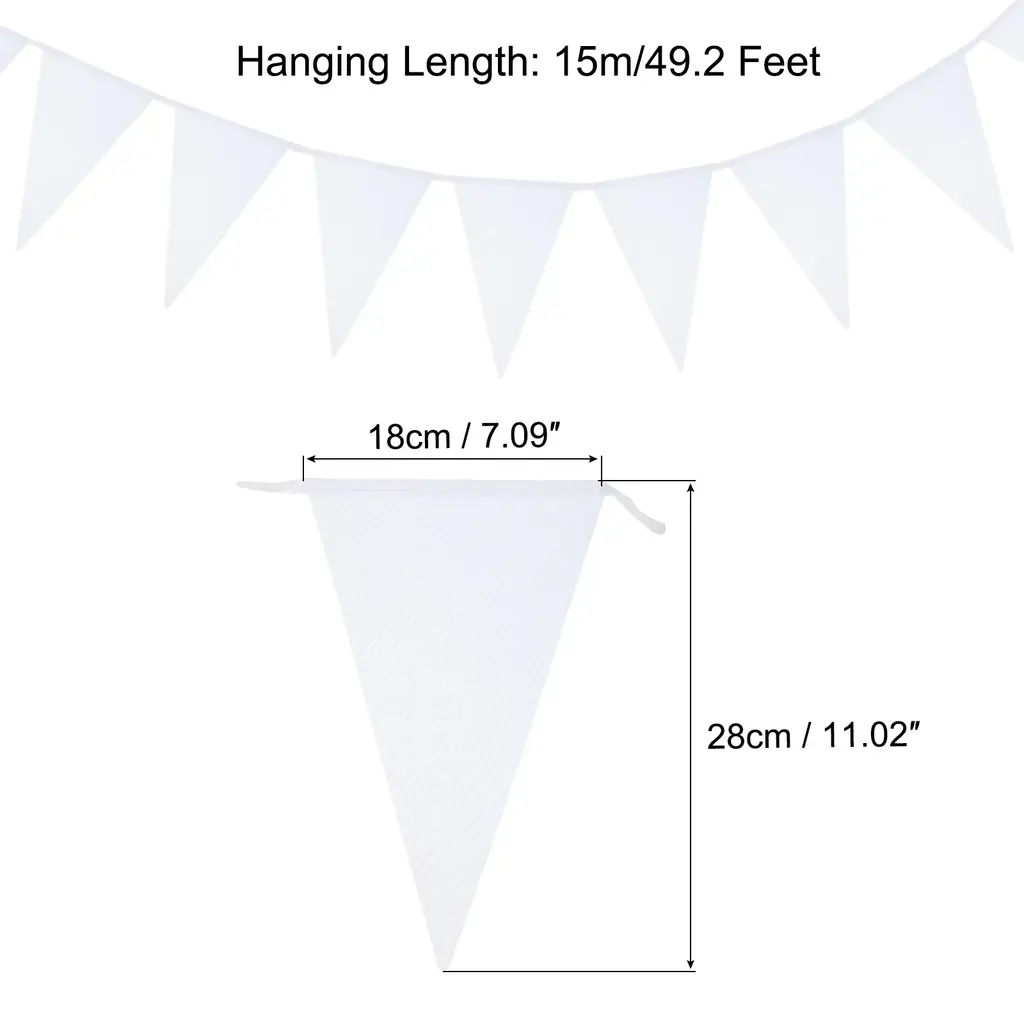 What is this?This pennant banner is mainly used for party decoration, you can hang or stick these decorative ribbons on the wall, window, door or shelf to add a different atmosphere to your party, mainly used for birthdays, weddings, Christmas, Easter, masquerade, graduation party and other partiesWhat will I get?Material: PolyesterColor: RedHanging Length: 15m/49.2 FeetUnexpanded size:18*28cm / 7.09 x 11.02 inch(L*W)Package content:2 Pcs x Triangle HangingIs there any advantage of the product?1. This pennant banner flags is made of Polyester, not easy to bend and break, and can be repeated. After the party is over,just take it off and fold it back.2. Pennant banner flags string has solid color banner, you can DIY draw any pattern you want on the banner, adding a variety of decorations to your party.3. These triangle bunting flags are very easy to use, strong rope, so that you will not fall off easily even if you hang it outdoors, you can hang it on any decorative place you wantHow to use it?Unfold the triangle bunting flags , and then tie the ropes at both ends to a fixed positionWhat should I notice?Tips: please confirm the length before you buy.