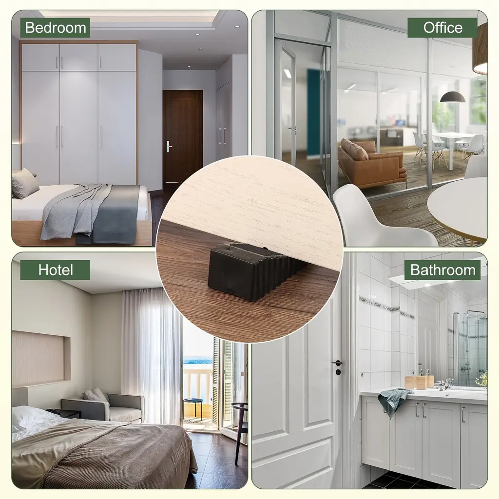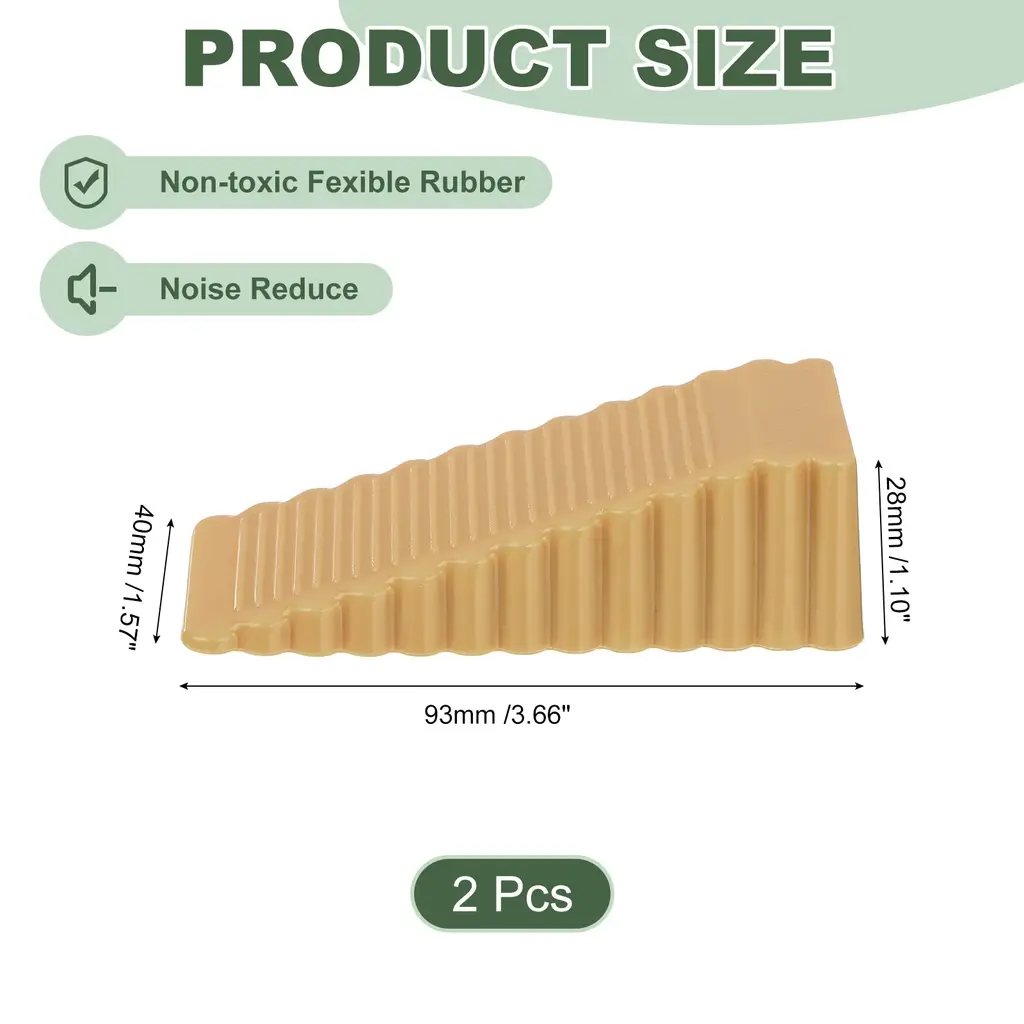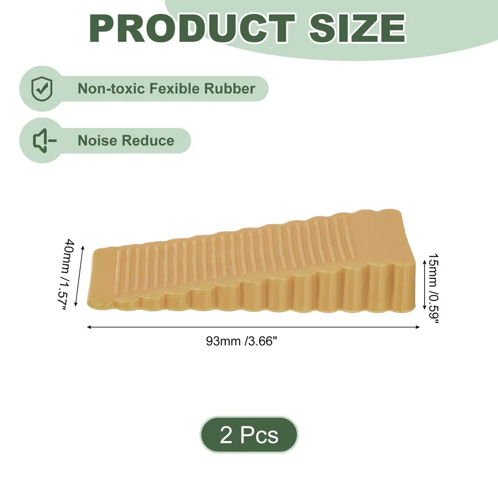 Description :Anti-Slip Design - The door stopper has a double-sided anti-slip function, with a horizontal stripe design on the surface, which increases the friction with the door and can easily fix the position of the door. The bottom hollowed-out anti-slip design keeps the door stable on the floor, with even force distribution during use, and is not easy to move.Material - The door stoppers for the bottom of the door are made of ABS, soft and non-slip, they will not scratch the surface of the floor or door; It has elasticity and can adapt to larger gaps, and can also be used on floors of various materials (wooden boards, ceramic tiles, and so on), and the trapezoidal design also provides cushioning force when closing the door.Easy Using - Place the door stopper on the floor at a suitable distance, which is easy to replace and does not affect cleaning. In addition to being used as a buffer and fixing when opening the door, it can also be used when closing the door to stop it from opening from the outside.Wide Applications - These door stops can be applied to various occasions, such as offices, homes, shops, hotels, etc; These door stops ensure that doors do not accidentally slip and close, so you don't have to worry about the door suddenly closing in winds, protecting the door and walls.Specifications:Material: ABSColor: GreenTotal Size: 93 mm x 40 mm x 15 mm / 3.66 Inch x 1.57 Inch x 0.59 Inch (L*W*H)Fit for distances with door gaps: Less than 15 mm / 0.59 InchPackage Content:2 Pcs x Door Stoppers