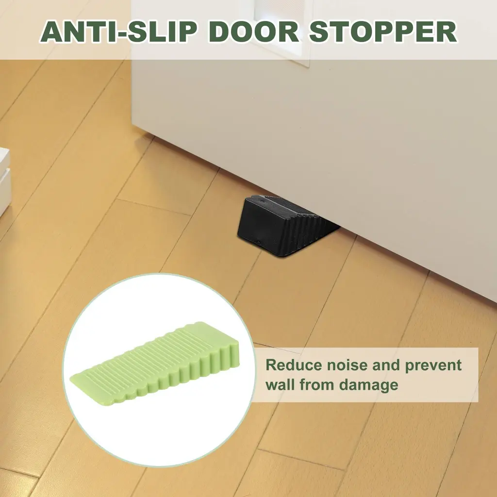 Description :Anti-Slip Design - The door stopper has a double-sided anti-slip function, with a horizontal stripe design on the surface, which increases the friction with the door and can easily fix the position of the door. The bottom hollowed-out anti-slip design keeps the door stable on the floor, with even force distribution during use, and is not easy to move.Material - The door stoppers for the bottom of the door are made of ABS, soft and non-slip, they will not scratch the surface of the floor or door; It has elasticity and can adapt to larger gaps, and can also be used on floors of various materials (wooden boards, ceramic tiles, and so on), and the trapezoidal design also provides cushioning force when closing the door.Easy Using - Place the door stopper on the floor at a suitable distance, which is easy to replace and does not affect cleaning. In addition to being used as a buffer and fixing when opening the door, it can also be used when closing the door to stop it from opening from the outside.Wide Applications - These door stops can be applied to various occasions, such as offices, homes, shops, hotels, etc; These door stops ensure that doors do not accidentally slip and close, so you don't have to worry about the door suddenly closing in winds, protecting the door and walls.Specifications:Material: ABSColor: GreenTotal Size: 93 mm x 40 mm x 15 mm / 3.66 Inch x 1.57 Inch x 0.59 Inch (L*W*H)Fit for distances with door gaps: Less than 15 mm / 0.59 InchPackage Content:2 Pcs x Door Stoppers