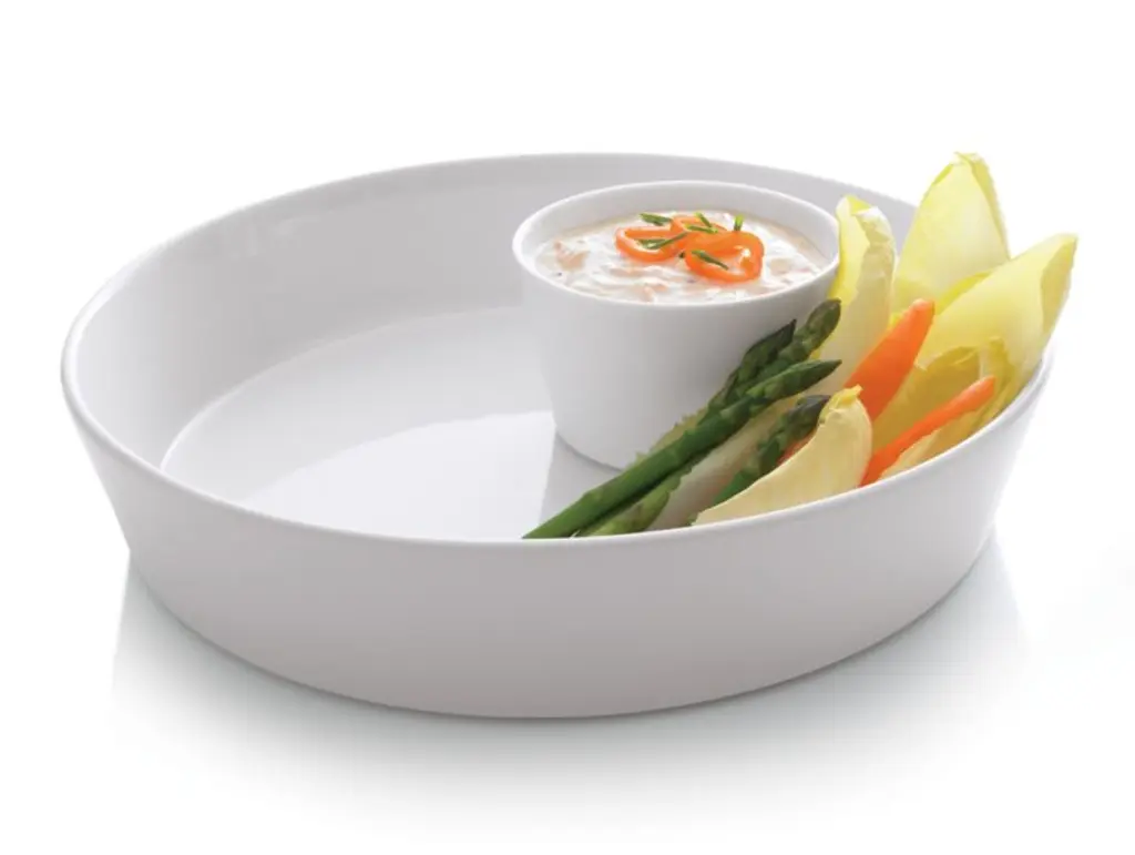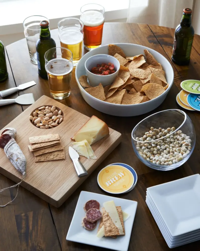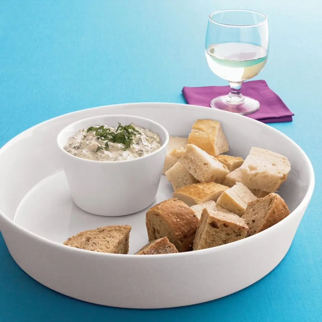 Two-piece snack service pairs or separates for ultimate versatility. Simple design in white porcelain coordinates with most dinnerware and table appointments.Tips and advice for throwing a winning football party.