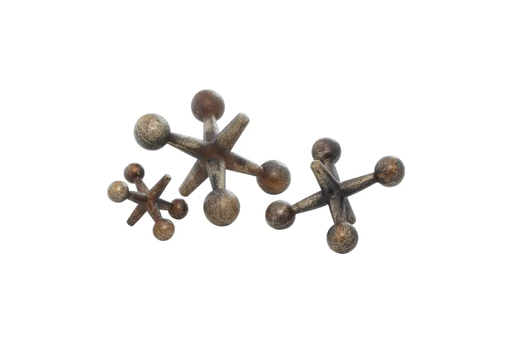 Reminiscent of your childhood, the 2-Piece Decorative Jack Set will evoke memories of a simpler, more carefree time in your life. Each piece is expertly crafted using cast iron for strength and durability, shaped to look like pieces from the classic jacks game you played when you were just a kid. The decorative accents are furnished in an easy-to-incorporate, canyon bronze finish so you can effortlessly place them in any room of your home.