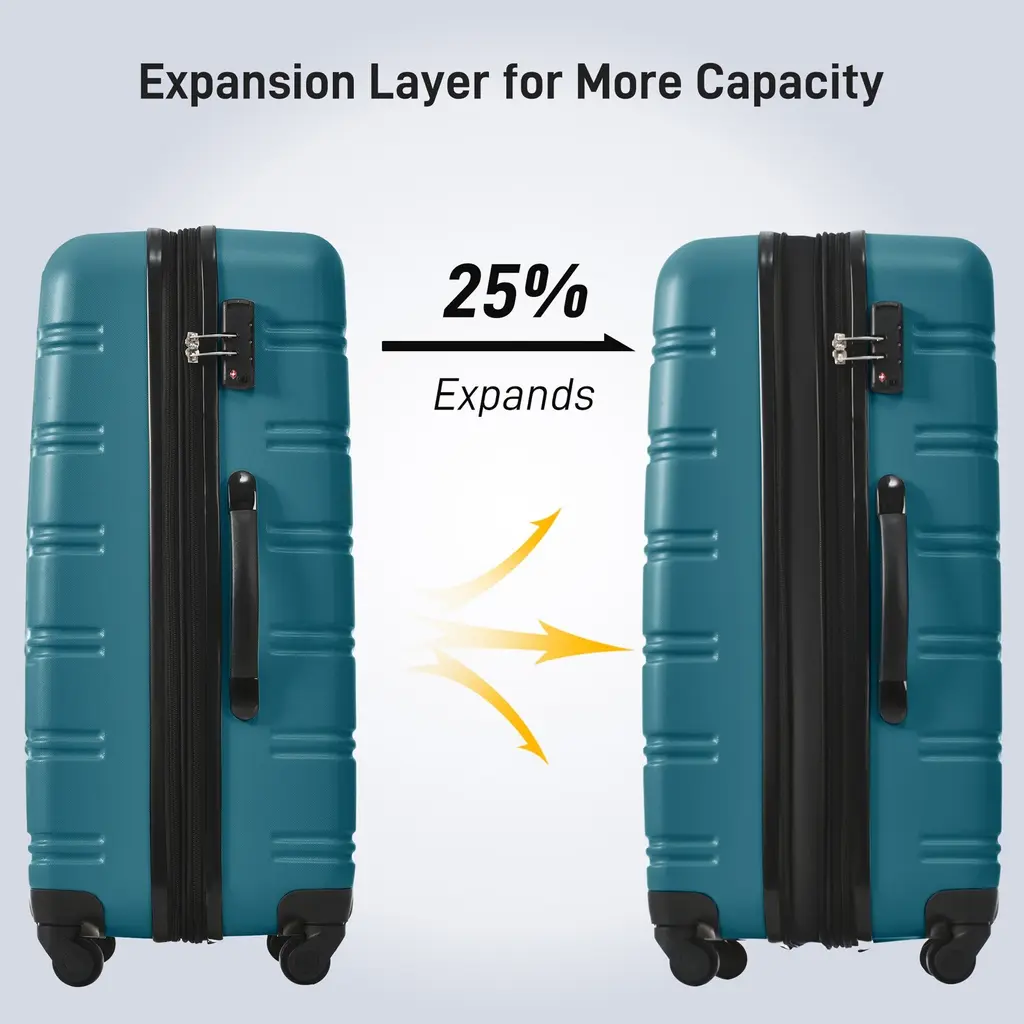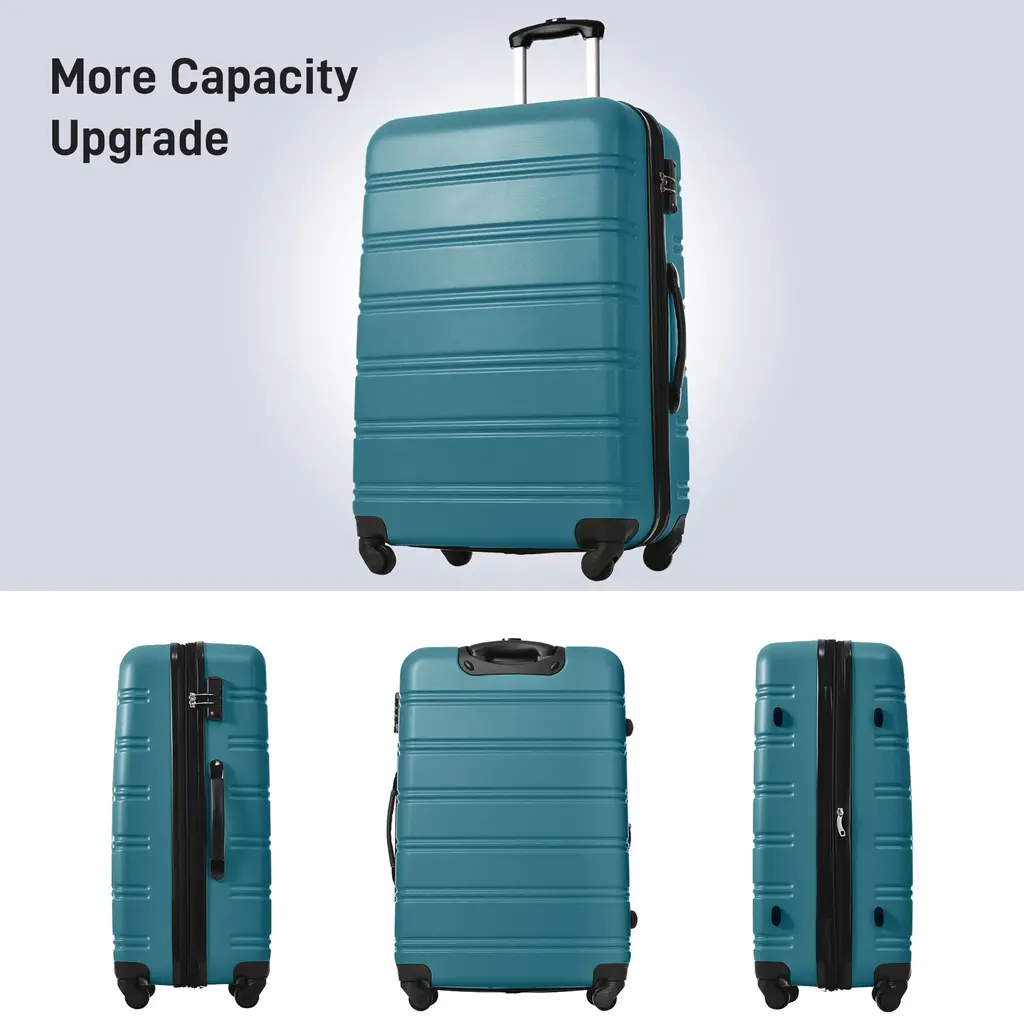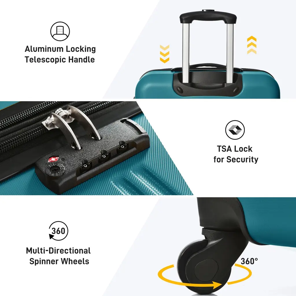 2-Piece Luggage: 2 sizes that you can choose from based on your personal or family needs to maximize your family, work, and travel needs.Material: Sturdy ABS shell is extremely crack-resistant, easy to clean, allowing you to enjoy the visual experience brought to you by the exquisite appearance of this luggage.Details: Ergonomic telescopic handle system allows you to organize your luggage more quickly and conveniently; TSA Customs combination lock design, better protection of the hard-side suitcase and .360 Degree Spinning Casters: Has 4 360-degree swivel wheels that rotate noiselessly and smoothly for easy mobility. All pieces roll upright to minimize arm strain.Ideal Interior Space: The interior of the luggage is equipped with straps for securing clothing, zippered divider pockets for wet/dry separations, and mesh compartments for documents or toiletries.