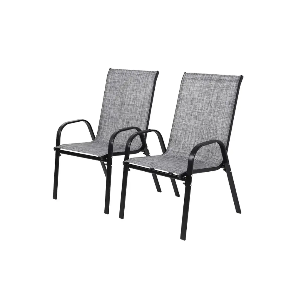 2 Piece Patio Chairs,outdoor Camping Chairs With Breathable Textilene Fabric,set Of 2 Chairs With Armrest High Backrest For Garden,space Saving( Grey)