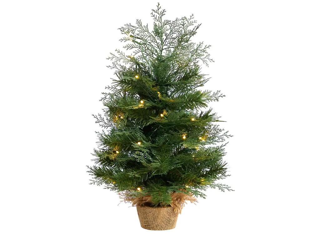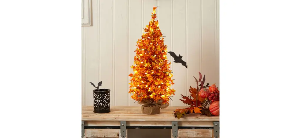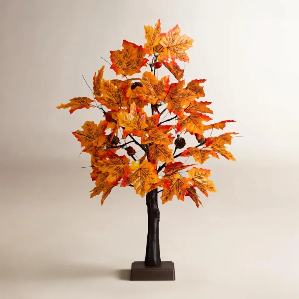 Love Christmas and Fall? Combine your love for both with this 2" Pre-Lit Harvest Artificial Tree in Burlap Base. Inspired by the fall foliage, display your festive cheer a little early this year and add decorations on any of the 1298 bendable branches. Pre-strung with 50 LED lights, set your home aglow after a chilly day. Standing 2" from a burlap base, included in the height, it will add to any tight area. Perfect for an office, living room or desktop. Your artificial Tree will look beautiful for years to come; simply wipe clean with a soft dry cloth when needed.