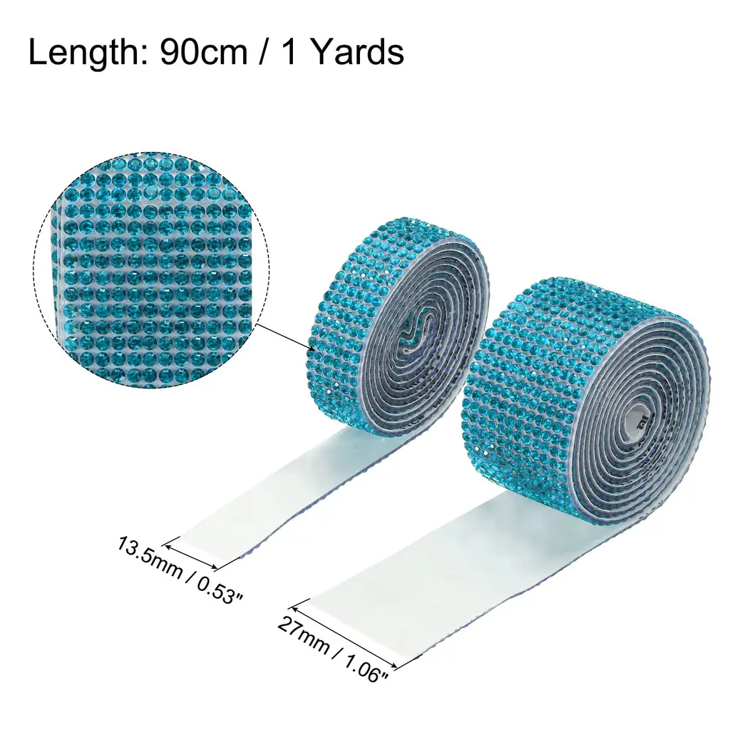 Add a touch of sparkle to any occasion or item with this 2 Roll 1 Yard Self Adhesive Crystal Ribbon. Made of high-quality resin, each roll features a stunning shine and smooth, flat surface that glistens under any light. With a double-sided tape backing, this ribbon is easy to use and can be cut to the desired size for your specific needs. Perfect for decorating furniture, cakes, handicrafts, and more, this crystal ribbon adds a touch of elegance to weddings, birthday parties, and other special events. Each roll measures 90cm x 13.5mm/27mm (1 Yard x 0.53 inches/1.06 inches). Elevate your DIY projects with this adhesive diamond ribbon.Features: