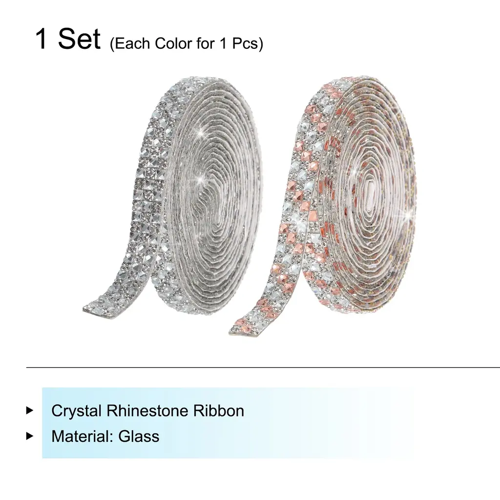 2 Roll 3 Yard 12mm Self Adhesive Crystal Diamond Ribbon 2 Style - Colorful Champagne