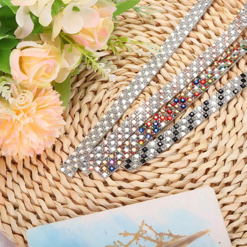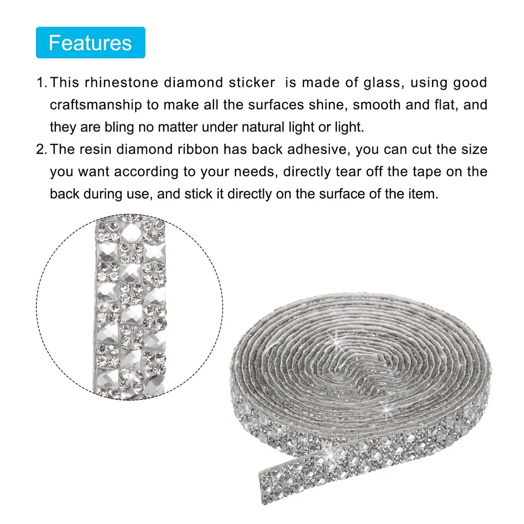 What is this?Rhinestone diamond ribbon can mainly be used to decorate different occasions and items in your life. You can use it for decoration of clothing, luggage, mobile phone, notebook, gift, furniture, car, etc., and you can also use it for decoration on different parties, such as weddings, birthday parties, and other holidays, etc.What will I get?Color:White ChampagneMaterial: GlassTotal Size: 12mm x 270cm/0.47 inch x 3 Yard (W*L)In the package of: 2 Roll x Crystal Rhinestone Ribbon Are there any advantages of the product?1. This rhinestone diamond sticker is made of glass, using good craftsmanship to make all the surfaces shine, smooth and flat, and they are bling no matter under natural light or light.2. The resin diamond ribbon has back adhesive, you can cut the size you want according to your needs, directly tear off the tape on the back during use, and stick it directly on the surface of the item.3. The bling rhinestones Roll are not easy to fall off, and the adhesive performance is stable. You can use it to easily stick to the surface of the car, or to stick to the surface of other itemsHow to use it?You just need to cut the diamond gems sticker to the length you need and use it to diy your items. Wipe the surface of the item before use, then tear off the adhesive sticker and stick it onWhat should I notice?Within 48 hours of use, do not let the craft come into contact with liquids
