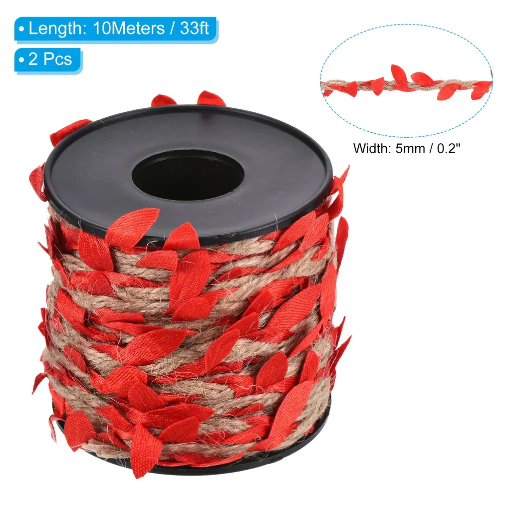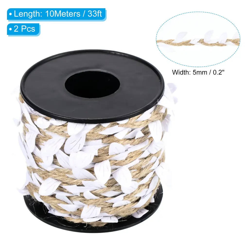Natural jute twine has various applications, great for home, garden, wedding, jungle theme party and other occasions decorations to add a touch of nature. It also can be used for DIY project, gift wrapping, photo wall, photo album decor, glass jar hanging wrapping decor, garland making, etc.Specification Material: Jute, FabricLength: 10 M / 33 ftWidth: 5 mm / 0.2 inchPacking List: 2 Roll x Leaf Ribbon Burlap TwineAdvantageBurlap leaf ribbon is a natural-looking artificial vine made of jute rope with fabric leaves. The jute twine is soft, not easy to fade, durable and can be used repeatedly. The leaves on the ribbon are carefully crafted to mimic real leaves to create a natural environment.InstructionThe leaf string can be used in place of the cord to wrap and fix gifts or bouquets, the length can be cut as needed.NOTE: Due to the difference in natural light and display resolution, the item color displayed in photos may be showing slightly different from the real object.