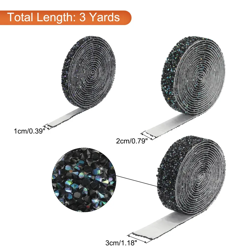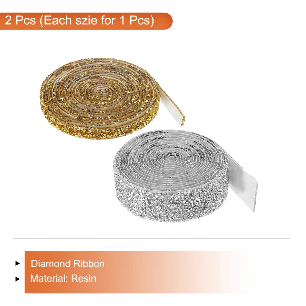 What is this?Crystal belts can mainly be used to decorate different occasions and items in your life. You can use it for decoration of furniture, cakes or handicrafts, and you can also use it for decoration on different parties, such as weddings, birthday parties, and other holidays, etc.What will I get?Color: White,GoldMaterial: ResinEach Size(L*W):270cm x 1cm/3 Yards x 0.39 inches;270cm x 3cm/3 Yards x 1.18 inches;In the package of: 2 Roll x Diamond RibbonAre there any advantages of the product?1. This crystal ribbon is made of resin, using good craftsmanship to make all the surfaces shine, smooth and flat, and they are bling no matter under natural light or light.2. The resin diamond ribbon has a double-sided tape, you can cut the size you want according to your needs, directly tear off the tape on the back during use, and stick it directly on the surface of the item.3. The decoration sticker are not easy to fall off, and the adhesive performance is stable. You can use it to easily stick to the surface of the itemsHow to use it?You just need to cut the diamond gems sticker to the length you need and use it to diy your items. Wipe the surface of the item before use, then tear off the adhesive sticker and stick it onWhat should I notice?Within 48 hours of use, do not let the craft come into contact with liquids