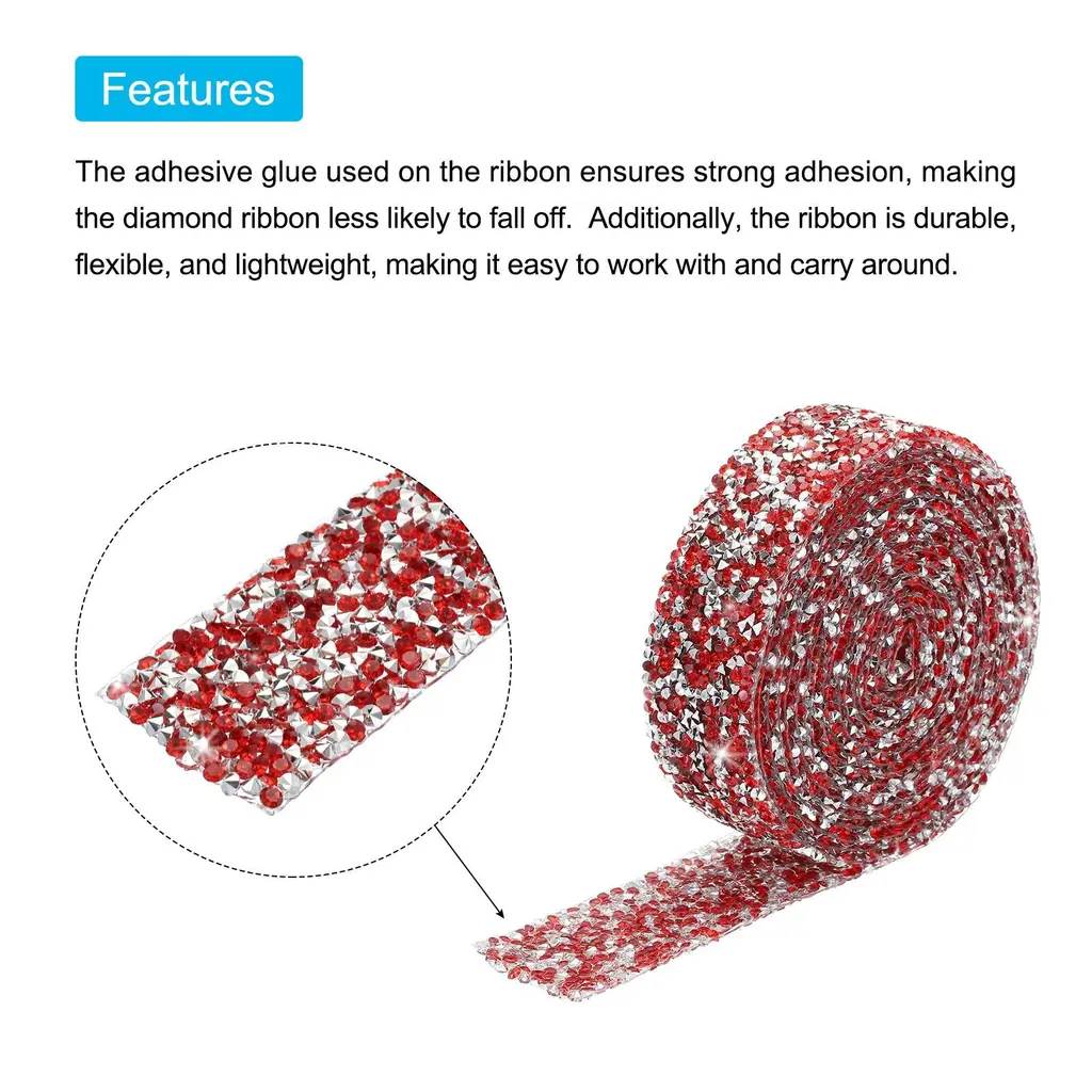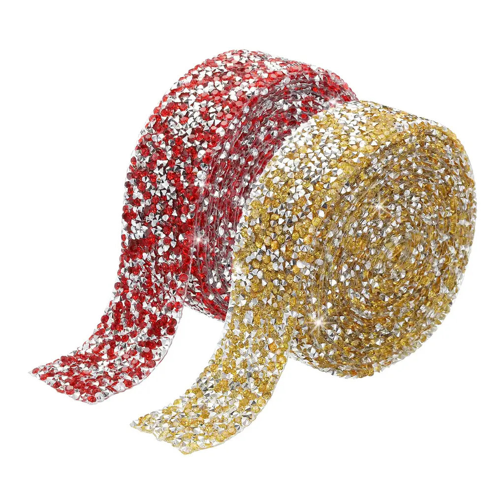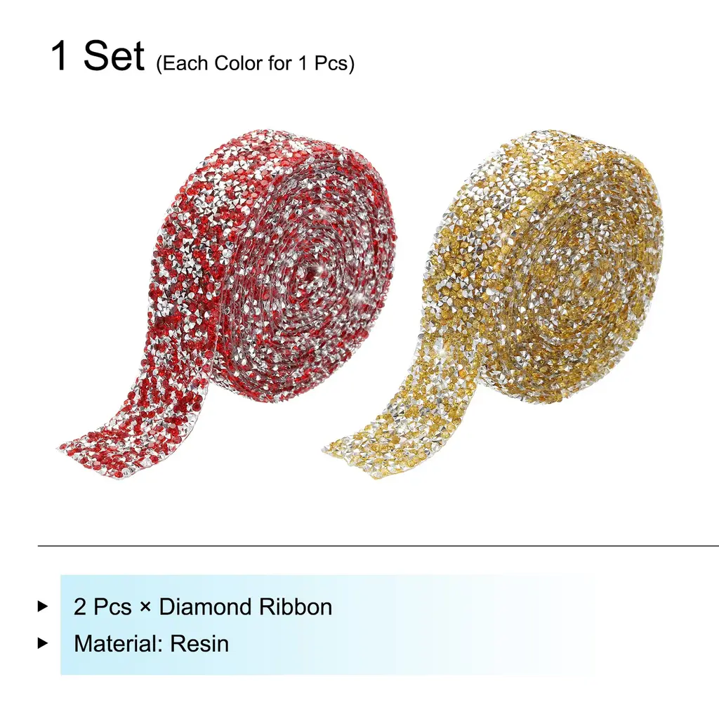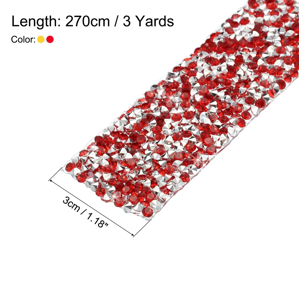 What is this?Crystal belts can mainly be used to decorate different occasions and items in your life. You can use it for decoration of furniture, cakes or handicrafts, and you can also use it for decoration on different parties, such as weddings, birthday parties, and other holidays, etc.What will I get?Color: Yellow And RedMaterial: ResinEach Size(L*W):270cm x 3cm/3 Yards x 1.18 inches;In the package of: 2 Roll x Diamond RibbonAre there any advantages of the product?1. This crystal ribbon is made of resin, using good craftsmanship to make all the surfaces shine, smooth and flat, and they are bling no matter under natural light or light.2. The resin diamond ribbon has a double-sided tape, you can cut the size you want according to your needs, directly tear off the tape on the back during use, and stick it directly on the surface of the item.3. The decoration sticker are not easy to fall off, and the adhesive performance is stable. You can use it to easily stick to the surface of the itemsHow to use it?You just need to cut the diamond gems sticker to the length you need and use it to diy your items. Wipe the surface of the item before use, then tear off the adhesive sticker and stick it onWhat should I notice?Within 48 hours of use, do not let the craft come into contact with liquids