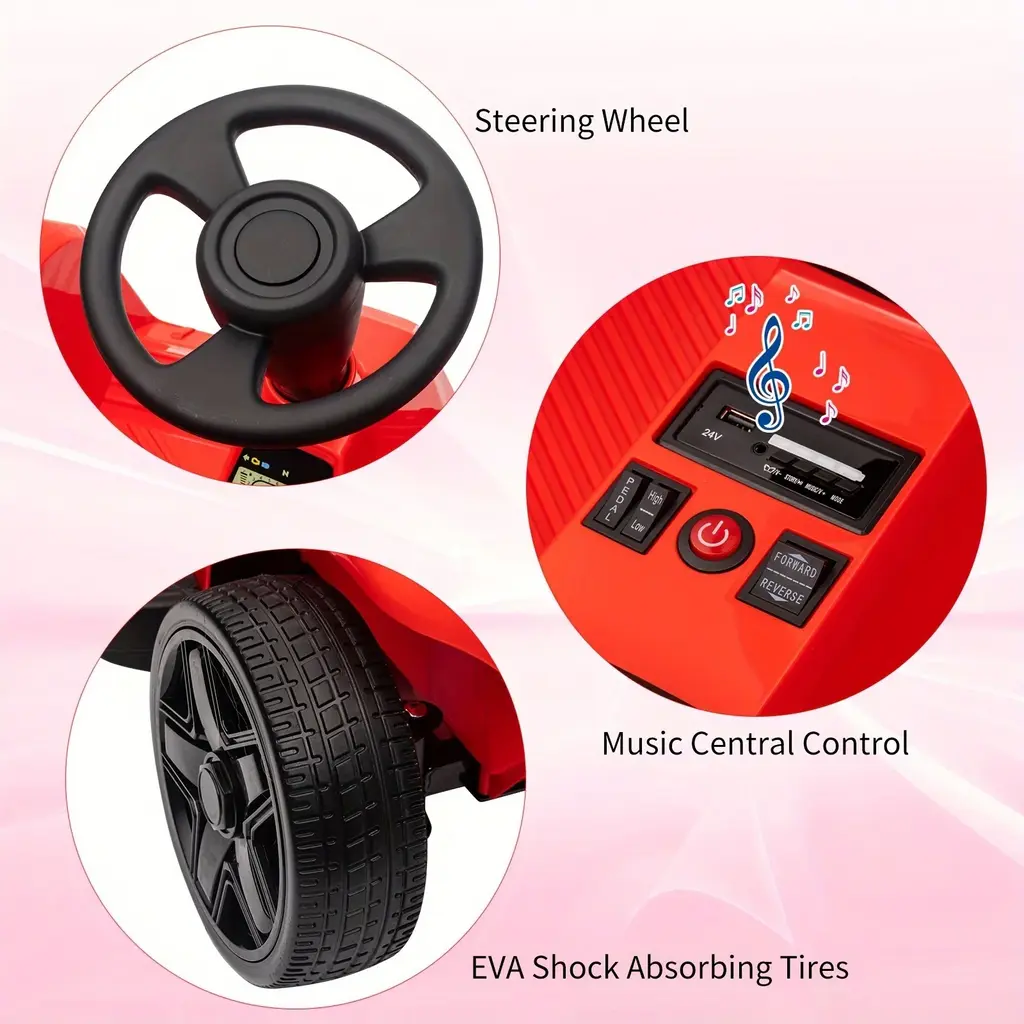 2 Seater 4 Wheel Electric Ride-On Car, 24v 120w*2 Powerful Motors, Max Load 200 Lbs, Music, Usb, Red - Red