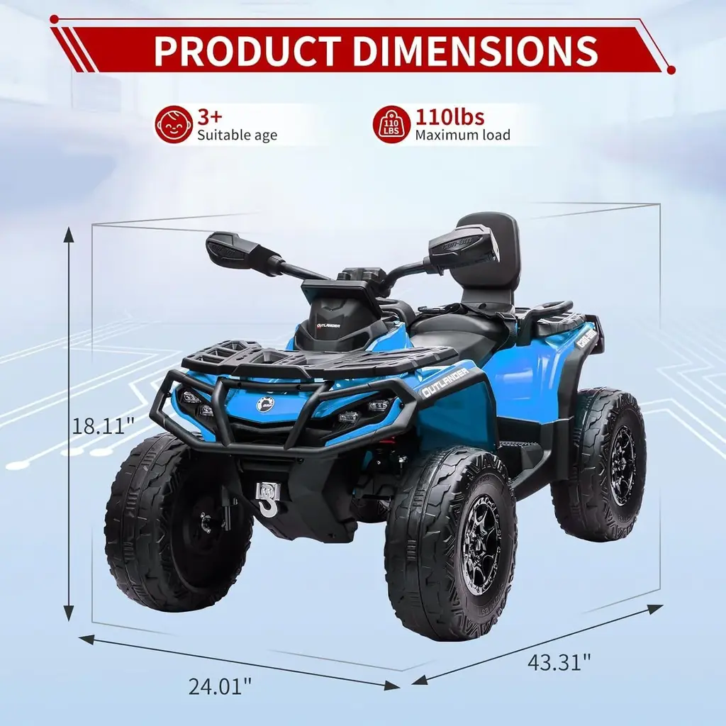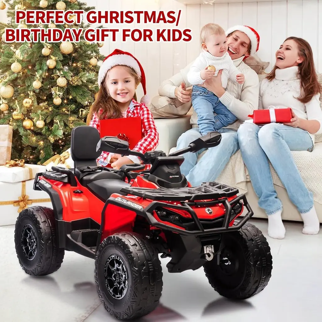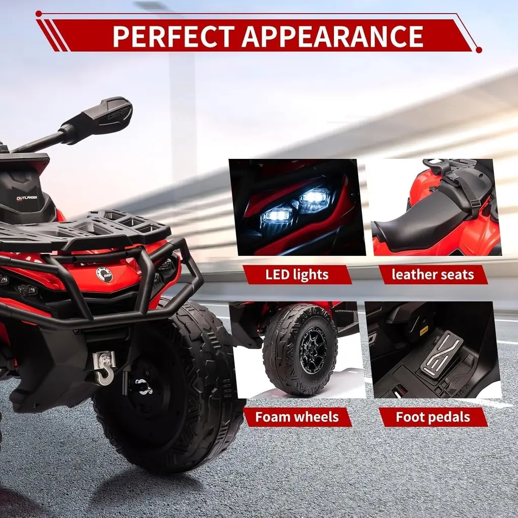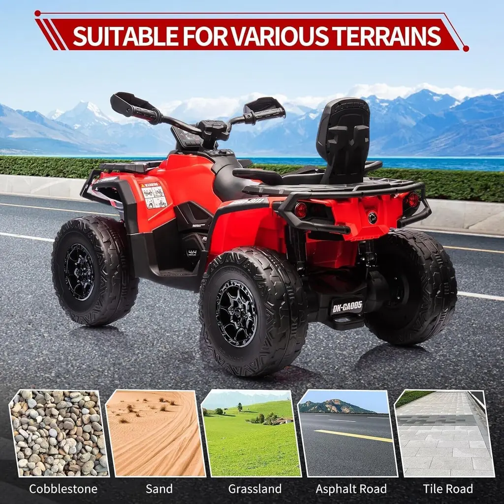 Powerful and Efficient: This ride-on vehicle is equipped with a robust 24V motor capable of reaching speeds up to 12,000 RPM. The long-lasting rechargeable battery enables extended playtime, while the included DC 28.8V 800mA charger ensures quick and convenient recharging. A battery level indicator allows kids to monitor their power, minimizing interruptions during their adventures. Adjustable Speed: Tailored for versatility, this ATV features adjustable speed settings ranging from 1.86 to 4.79 mph. Children can easily switch between two-wheel and four-wheel drive modes, allowing them to customize their driving experience according to their preferences and skills, thereby boosting their excitement and confidence. Comfortable and Realistic Driving Experience: Unlike standard plastic seats, this ATV is designed with plush leather seats that comfortably accommodate two passengers. Functional headlights, a responsive steering wheel, and a sensitive accelerator pedal enhance the realism of the driving experience, making kids feel as though they are driving an actual vehicle. Interactive Entertainment Features: The ATV includes engaging music and storytelling capabilities, with adjustable volume controls to keep young riders entertained during their journeys. With MP3, Bluetooth, and USB connectivity options, kids can personalize their audio experience, making outdoor adventures both fun and educational while introducing them to the world of music and storytelling. Best Gift for Kids: Prioritizing safety, this ride-on vehicle incorporates EVE tires, shock absorbers, and slow start technology to provide a smooth and secure ride. It makes for an excellent surprise gift for Christmas, birthdays, or other special occasions, ensuring that children have a memorable experience while giving parents peace of mind regarding their safety during playtime.