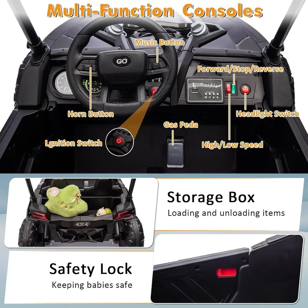 2 Seater Ride On Toys For Kids With 2.4g Remote Control - Black