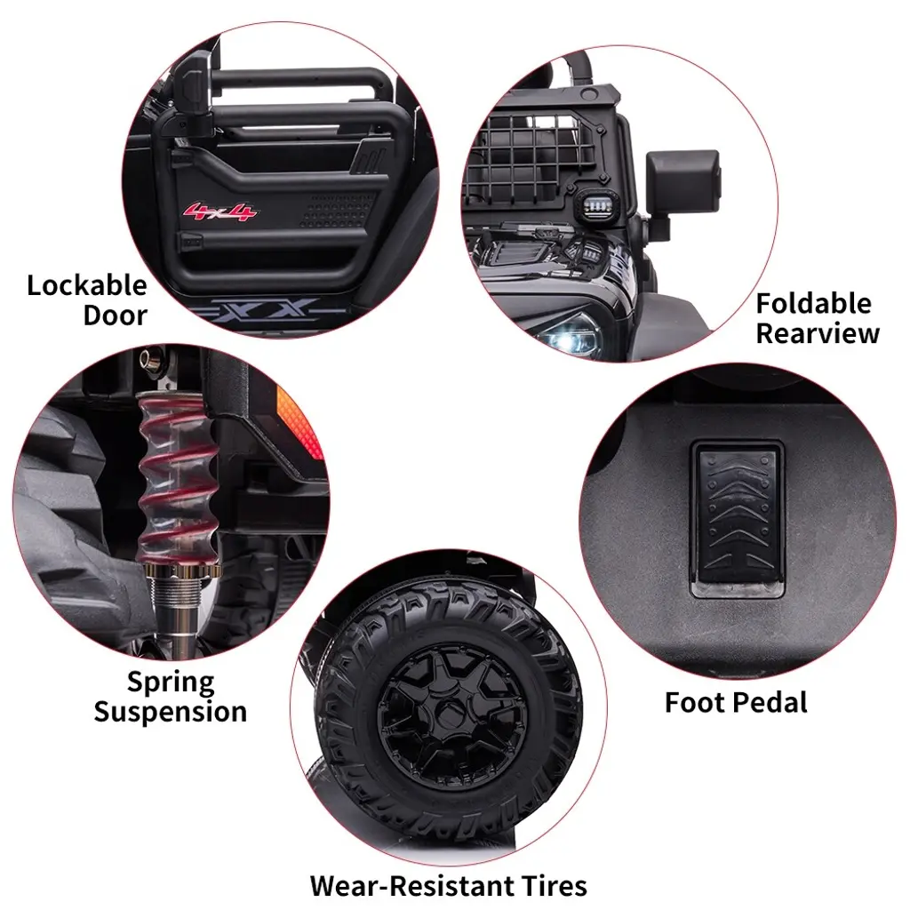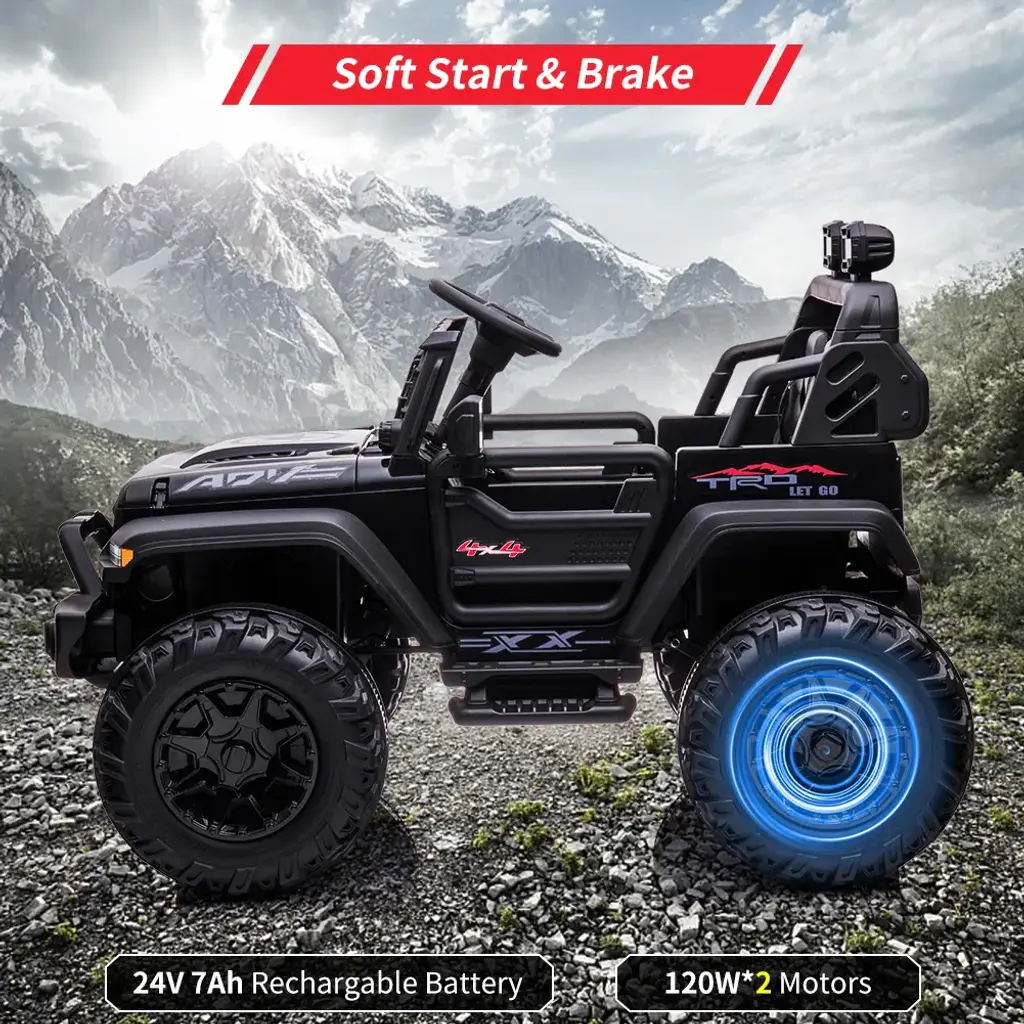 2 Seaters 20" Large Seat 24v Kids Ride On Car With Remote Control - Black