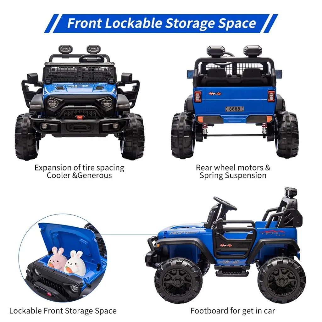 2 Seaters Kids Ride On Truck With Remote Control,20" Large Seat Ride On Car - Blue