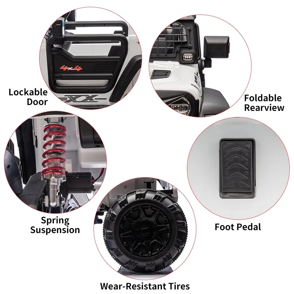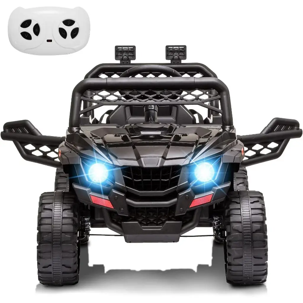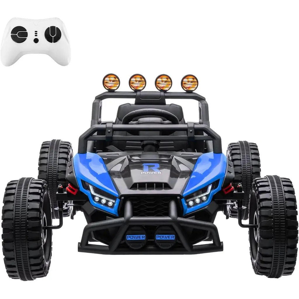 [Extra Strong Motors]--The ride on car equiped 24V 9AH battery and 2*120W powerful motors plus 14.2" wheels, can adapt to various terrain and provide continuous power in any condition!• [Build-in Fun]--The ride on vehicle already assembled with Music, USB, FM, LED headlights, Horn,Bottle Holder to provide much more funny for children. Low Power alarm function can remind your kids come back home timely.• [20" Real TWO Seats]--Overall size: 49.6"*38.6"*34.6"(L x W x H). Seat Width: 20". Max Load:48KG(106LB). The car can easily load 2 kids(under 4 years) or one 4-8 years child to drive. 2 seats with 2 single safety belt. The best gift a child can grow up with!• [Manual & Parental Control]-- The parent can control the car by remote control to enjoy the happiness time with child. The child also can operate by themself by foot pedal to control ideal speeds. Each wheel has an independent bearing to make steering smoother.• [Best Gift for Kids]-- The realistic driving experience, can let exercise the children's hand-eye coordination ability at the same time harvest full of fun, a car that children can play from childhood to teenhood, will be the best gift for children!
