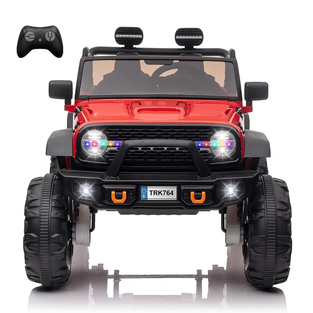 ☼4 Strong Motors: The ride on car equiped 24V 7AH battery and 4*45W powerful motors, can adapt to various terrain and provide continuous power in any condition!The slope of 20° can be easily passed. ☼Build-in Fun:The ride on vehicle already assembled with Music, USB, LED headlight+Tail Light to provide much more funny for children. The tail equipped with a shovel will bring more fun for kids.Play Time: 1.5-2.5 Hours after 8-12hours charging. ☼Real TWO Seats:Overall size: 47.6"*33"*32.3"(L x W x H). Seat Width: 19.7". Max Load:50KG(110LB). The car can easily load 2 kids(under 4 years) or one 4-8 years child to drive. 2 seats with 2 single safety belt. ☼Manual & Parental Control: The parent can control the car by remote control to enjoy the happiness time with child. The child also can operate by themself by foot pedal to control ideal speeds. Each wheel has an independent bearing to make steering smoother. ☼Delivered Two Packages: The ride on truck will be delivered in TWO packages! May can't be received in same day. After receiving both two boxes, then install it according to installation video or user manual.