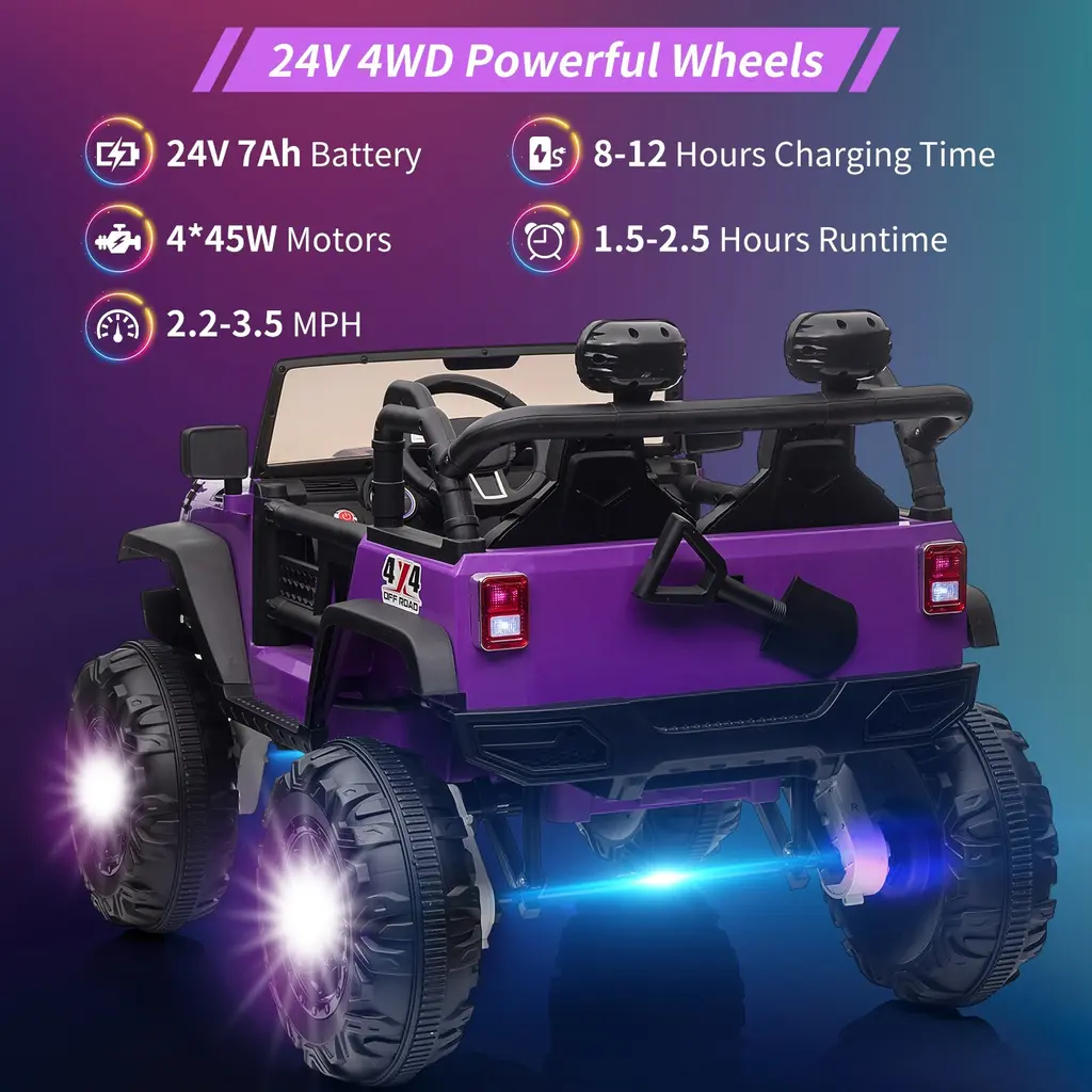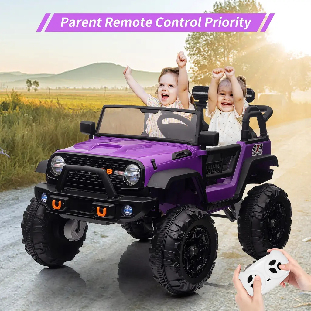 2 Seats 24v Kids Ride On Truck With Remote Control - Purple