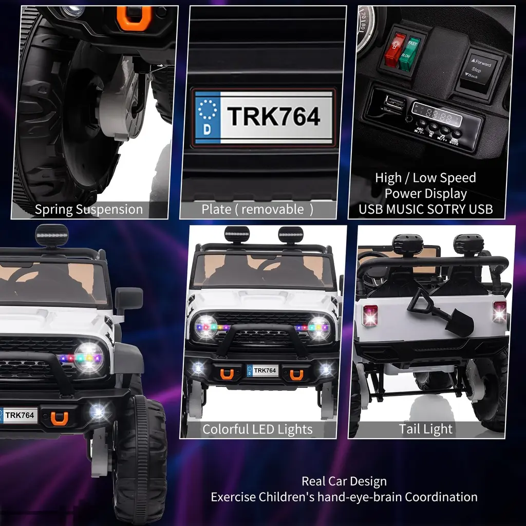 2 Seats 24v Kids Ride On Truck With Remote Control - White