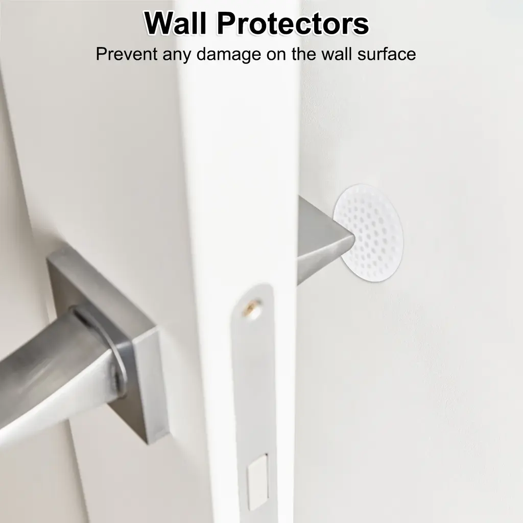2 Sets Strong Door Stoppers With Adhesive Holder And Protectors - Silver Black