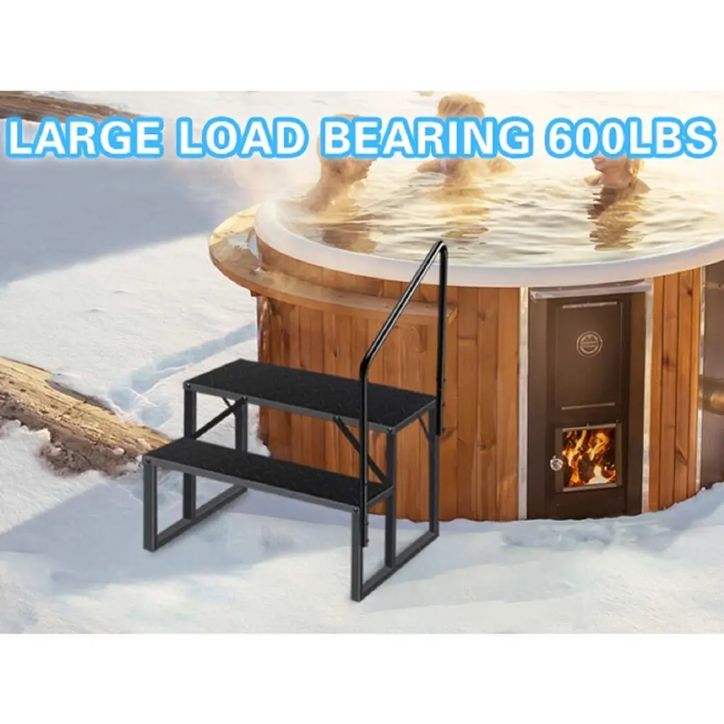 2-Step Ladder With Handrail For Above Ground Pools, Rv Steps, Anti-Slip Panel, 660 Lb Load Capacity - Black
