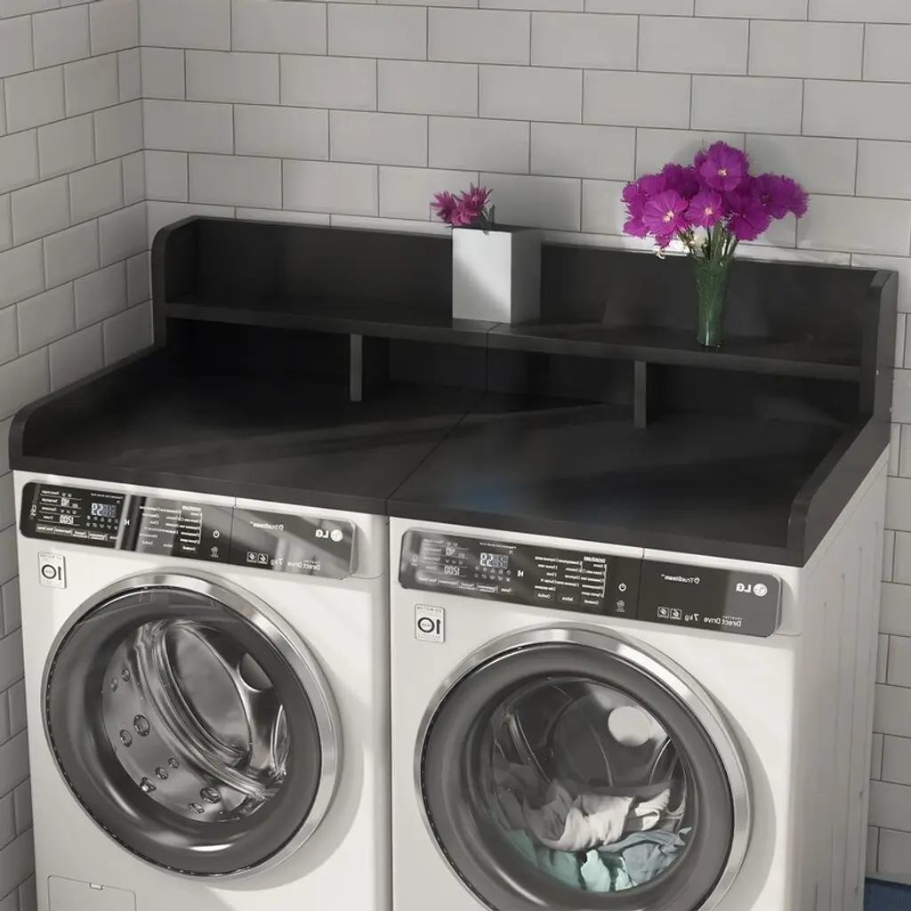 Description:Revolutionize your laundry routine with the Premium Waterproof Laundry Shelf Topper, a game-changer for modern homes. This 54" countertop transforms cluttered appliances into a sleek, multi-functional command center. Its dual-layer design corrals detergents, fabric softeners, and folded clothes, while the raised edges keep essentials from tumbling mid-task. Crafted for durability, the waterproof MDF surface laughs off spills and bleach splatters, while the scratch-resistant finish stays pristine even with pets or toddlers underfoot. Measuring 27.5" deep, it creates a spacious folding station without hogging floor space—perfect for apartments or mudrooms. Whether tackling weekend loads or prepping outfits for the week, this organizer streamlines every step. Plus, with tool-free assembly and a decade-long warranty, it’s the ultimate upgrade for women who demand style and smarts. Say goodbye to laundry chaos and hello to your new favorite room!Features:【Double-Layer Laundry Organization】- 54" x 27.5" countertop with dual shelves (12" height clearance) stores detergents, hampers, and folded clothes. Raised 3" edges prevent spills and keep essentials secure. 【Waterproof MDF Durability】- High-density MDF core wrapped in scratch-resistant, waterproof melamine withstands bleach, humidity, and daily wear—ideal for busy households with kids/pets. 【Maximized Workstation】- Extra divider creates dedicated zones for sorting, folding, and ironing. Fits all standard washers/dryers to convert cramped spaces into functional laundry hubs. 【Seamless Space Optimization】- Slim 27.5" depth tucks neatly above appliances, freeing floor space for baskets or cleaning tools. Matte finish resists fingerprints for a clutter-free look. 【Tool-Free Assembly】- Adjustable legs adapt to uneven floors; pre-drilled holes align with most washer/dryer units. Ships in 1 box.