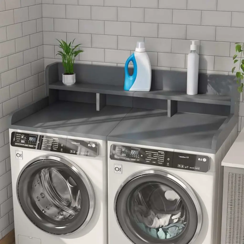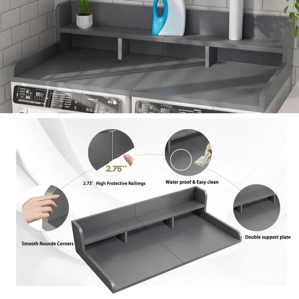 Description:Revolutionize your laundry routine with the Premium Waterproof Laundry Shelf Topper, a game-changer for modern homes. This 54" countertop transforms cluttered appliances into a sleek, multi-functional command center. Its dual-layer design corrals detergents, fabric softeners, and folded clothes, while the raised edges keep essentials from tumbling mid-task. Crafted for durability, the waterproof MDF surface laughs off spills and bleach splatters, while the scratch-resistant finish stays pristine even with pets or toddlers underfoot. Measuring 27.5" deep, it creates a spacious folding station without hogging floor space—perfect for apartments or mudrooms. Whether tackling weekend loads or prepping outfits for the week, this organizer streamlines every step. Plus, with tool-free assembly and a decade-long warranty, it’s the ultimate upgrade for women who demand style and smarts. Say goodbye to laundry chaos and hello to your new favorite room!Features:【Double-Layer Laundry Organization】- 54" x 27.5" countertop with dual shelves (12" height clearance) stores detergents, hampers, and folded clothes. Raised 3" edges prevent spills and keep essentials secure. 【Waterproof MDF Durability】- High-density MDF core wrapped in scratch-resistant, waterproof melamine withstands bleach, humidity, and daily wear—ideal for busy households with kids/pets. 【Maximized Workstation】- Extra divider creates dedicated zones for sorting, folding, and ironing. Fits all standard washers/dryers to convert cramped spaces into functional laundry hubs. 【Seamless Space Optimization】- Slim 27.5" depth tucks neatly above appliances, freeing floor space for baskets or cleaning tools. Matte finish resists fingerprints for a clutter-free look. 【Tool-Free Assembly】- Adjustable legs adapt to uneven floors; pre-drilled holes align with most washer/dryer units. Ships in 1 box.