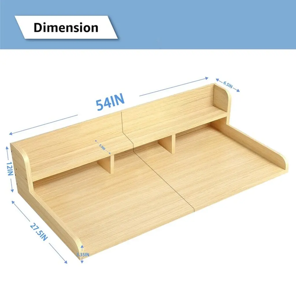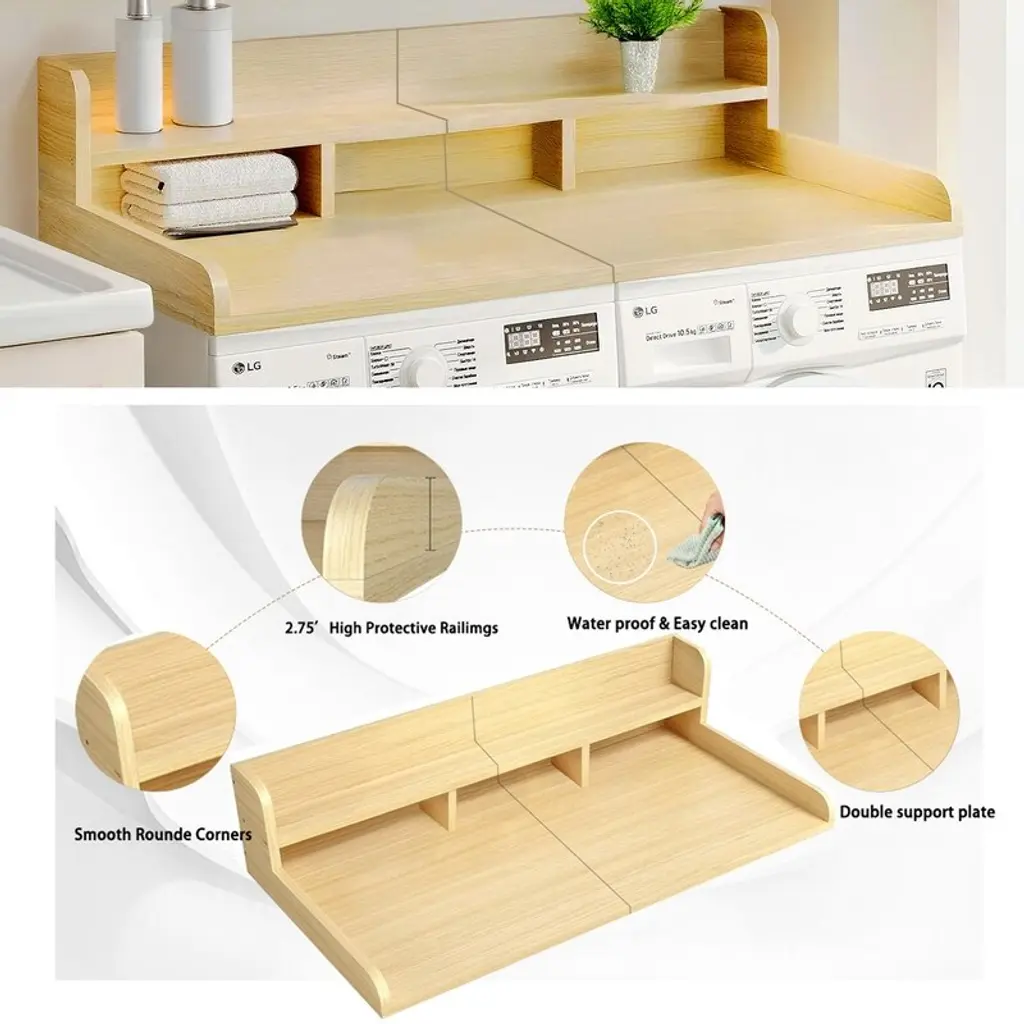 2-Tier Washer Dryer Countertop, 54" W X 27.5" D Laundry Countertop For Folding Clothes, Dual Storage & Edge Guard - Oak