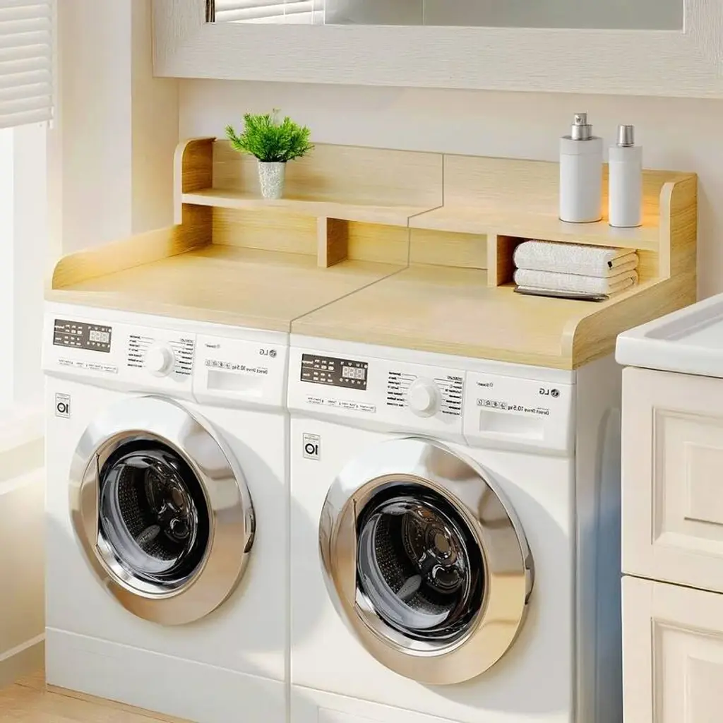 Description:Revolutionize your laundry routine with the Premium Waterproof Laundry Shelf Topper, a game-changer for modern homes. This 54" countertop transforms cluttered appliances into a sleek, multi-functional command center. Its dual-layer design corrals detergents, fabric softeners, and folded clothes, while the raised edges keep essentials from tumbling mid-task. Crafted for durability, the waterproof MDF surface laughs off spills and bleach splatters, while the scratch-resistant finish stays pristine even with pets or toddlers underfoot. Measuring 27.5" deep, it creates a spacious folding station without hogging floor space—perfect for apartments or mudrooms. Whether tackling weekend loads or prepping outfits for the week, this organizer streamlines every step. Plus, with tool-free assembly and a decade-long warranty, it’s the ultimate upgrade for women who demand style and smarts. Say goodbye to laundry chaos and hello to your new favorite room!Features:【Double-Layer Laundry Organization】- 54" x 27.5" countertop with dual shelves (12" height clearance) stores detergents, hampers, and folded clothes. Raised 3" edges prevent spills and keep essentials secure. 【Waterproof MDF Durability】- High-density MDF core wrapped in scratch-resistant, waterproof melamine withstands bleach, humidity, and daily wear—ideal for busy households with kids/pets. 【Maximized Workstation】- Extra divider creates dedicated zones for sorting, folding, and ironing. Fits all standard washers/dryers to convert cramped spaces into functional laundry hubs. 【Seamless Space Optimization】- Slim 27.5" depth tucks neatly above appliances, freeing floor space for baskets or cleaning tools. Matte finish resists fingerprints for a clutter-free look. 【Tool-Free Assembly】- Adjustable legs adapt to uneven floors; pre-drilled holes align with most washer/dryer units. Ships in 1 box.