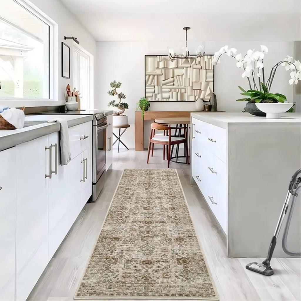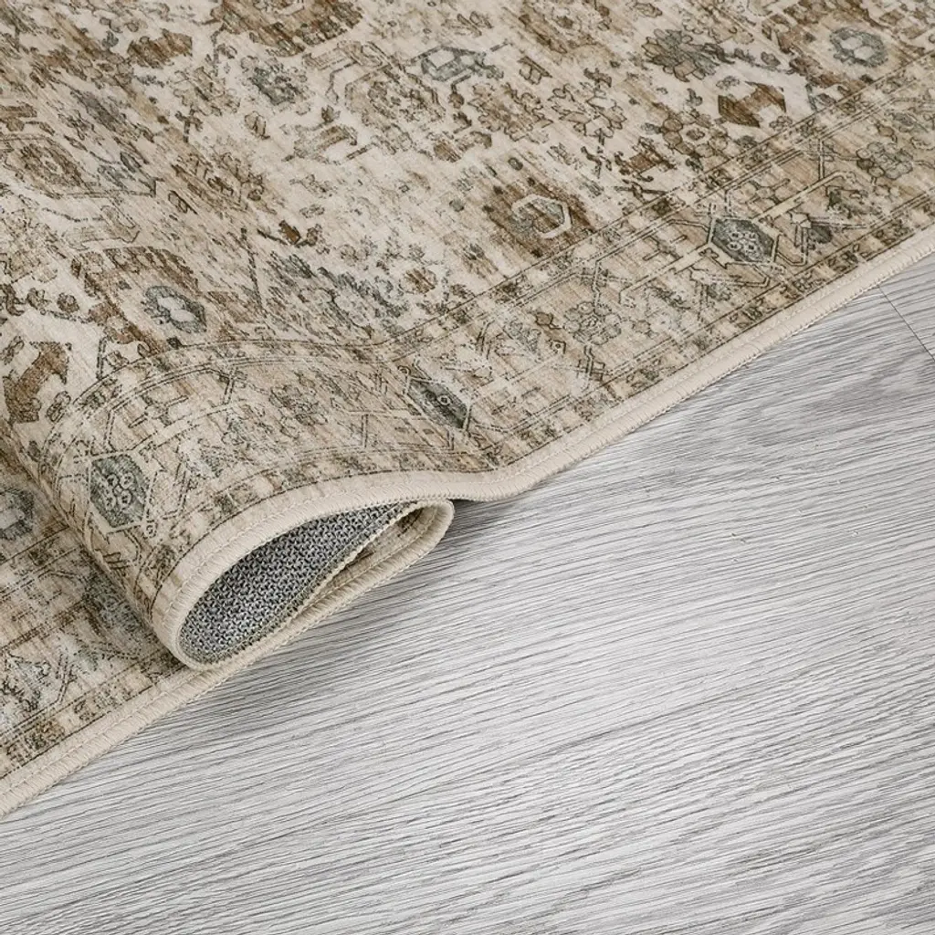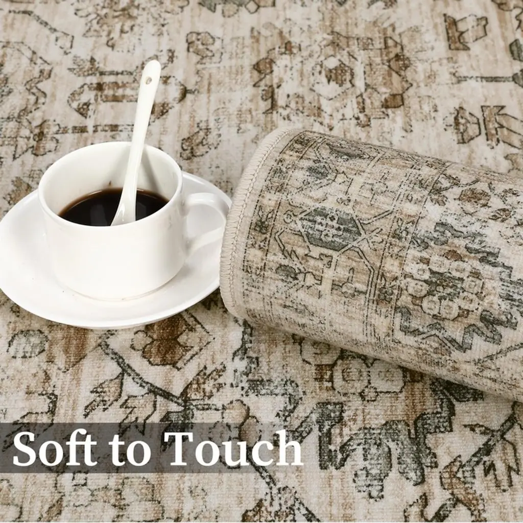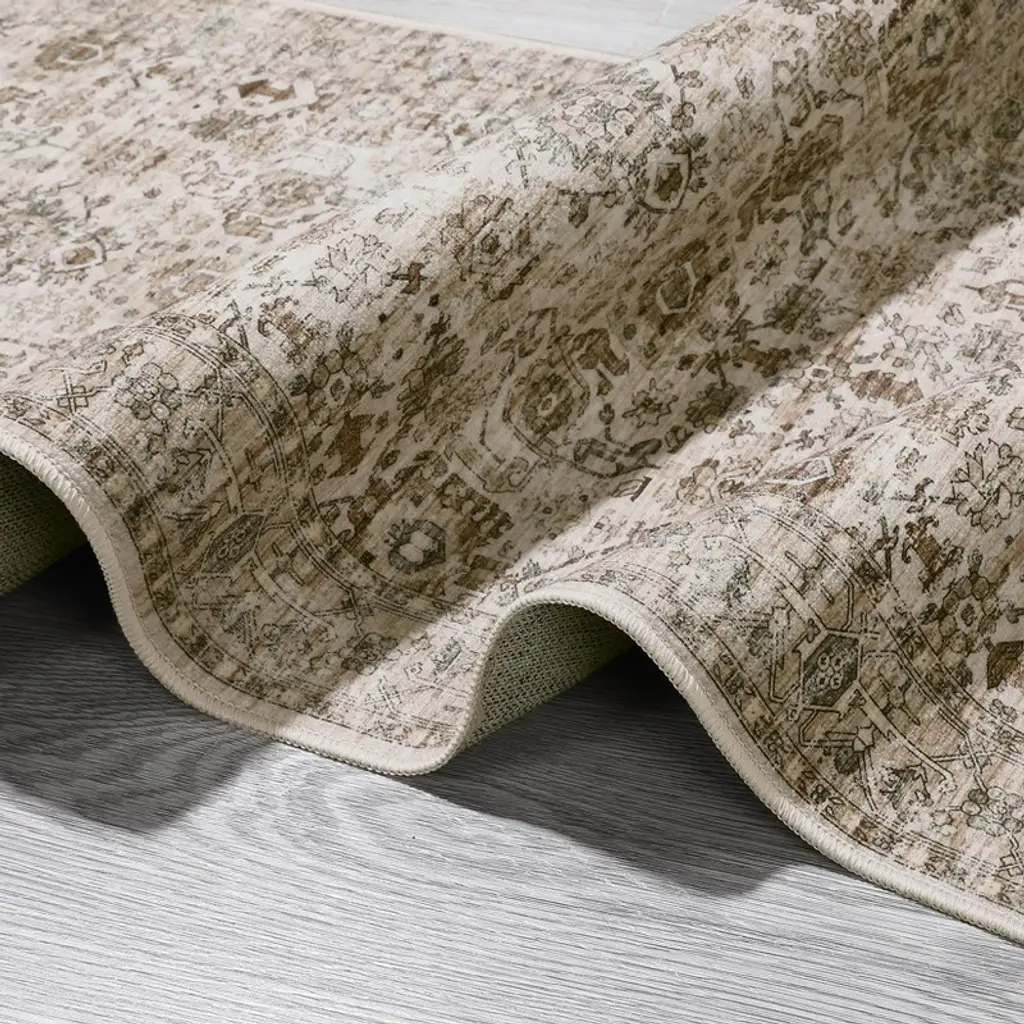 2 X 6 Ft Polyester Beige Brown Rectangular Hallway Bathroom Entryway Kitchen Office Foldable Flower Printed Modern Washable Area Rug