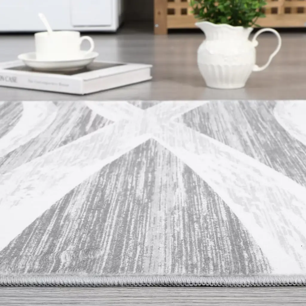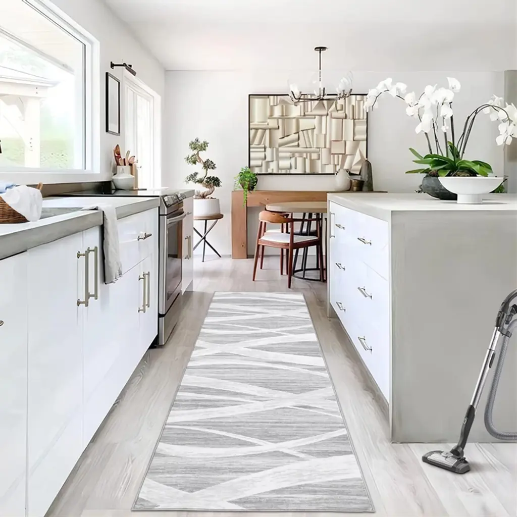 2 X 6 Ft Polyester Imitation Light Gray Rectangular Hallway Bathroom Entryway Kitchen Office Foldable Line Printed Modern Washable Area Rug