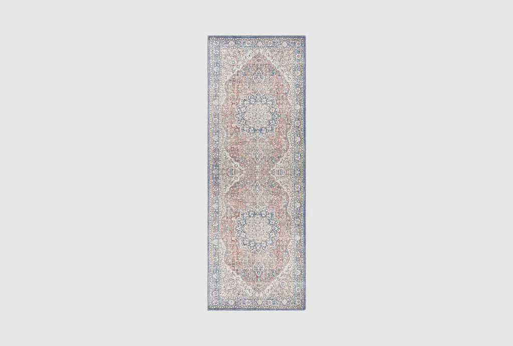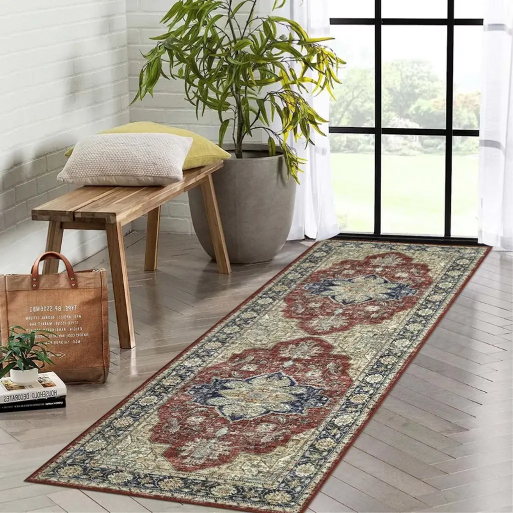 2 X 6 Ft Polyester Red Rectangular Hallway Bathroom Entryway Kitchen Office Foldable Flower Printed Washable Area Rug