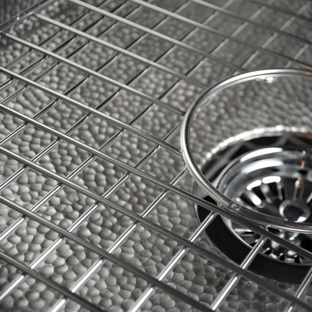 Protect your kitchen sink from wear and tear with this sink bottom grid. Made of durable stainless steel, this dishwasher-safe grid keeps sharp or heavy items from damaging your sink's surface as well as providing some cushion for fragile items. This grid sits easily inside your sink basin and has acrylic feet to prevent slipping.Finish Options: Brown and SilverSet includes: One (1) bottom gridMaterials: Durable stainless-steelSpecial Features:Helps protect your sink surface from daily wearAcrylic feet provide added protectionDishwasher safeFits the Cocina 24, Farmhouse 2418 and Farmhouse 25 kitchen sinks producedReplaces GR970 and GR979Dimensions:Bottom grid dimensions: 0.25 inches high x 14.5 inches wide x 20.5 inches longThis product will ship to you in one (1) box.Accessories pictured are NOT included.