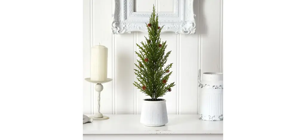 Evoke hints of the holiday spirit on bare surfaces with the help of the 20" Cedar Pine Natural Look Artificial Tree with Mini Pine Cone . Designed with a natural sparseness, this versatile artificial Christmas tree boasts a collection of realistic looking cedar pine foliage made up of bendable branches for easy and effortless decorating.