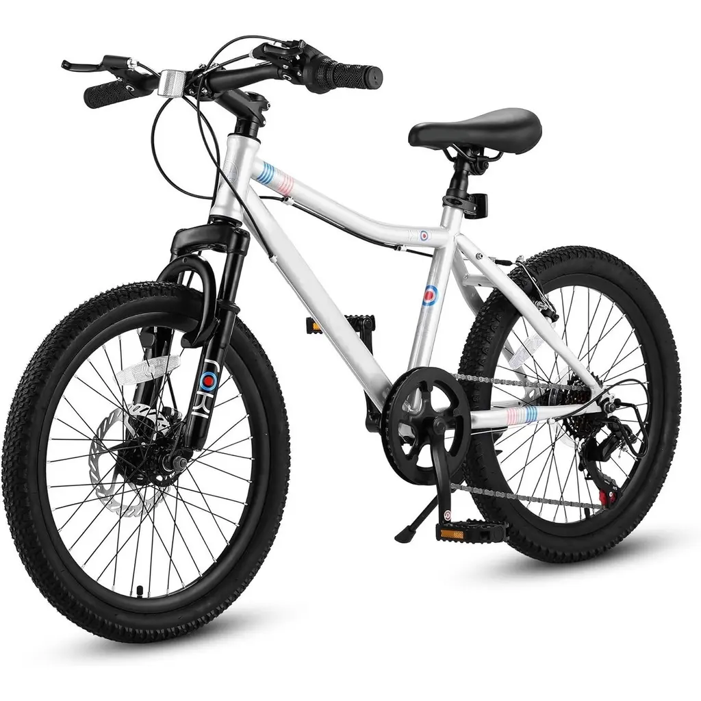 Ergonomic Steel Frame: Designed for kids aged 8-12 with a rider height of 4'2" to 5'6", the 14-inch carbon steel frame provides safety and comfort, featuring a lower standover height for easier mounting and dismounting.Advanced Braking System: Equipped with a front disc brake and rear V-brake, this bike ensures precise and controlled stopping power, making it suitable for various terrains while maintaining a lightweight design that\u2019s easy for kids to handle.7-Speed Drivetrain: The classic 7-speed rear derailleur, paired with a twist shifter, allows young riders to effortlessly tackle climbs and navigate different terrains, fostering their adventurous spirit as they explore new routes.Quality Tires for Safety: The 20"x2.125" tires made of robust rubber provide excellent puncture and abrasion resistance, ensuring that children can ride confidently and enjoy their cycling experience without the fear of falls.Quick and Easy Assembly: Arriving 85% assembled, the Kids' Bicycle can be fully put together in just 20 minutes, making it simple for parents to assemble with included tools and tutorial videos, ensuring a hassle-free setup experience.Description:Product Name:20 Inch Kids BikeProduct Style:ClassicMain Material:Carbon steelFiller:Polyurethane FoamColor:GreenAge Capacity:8 to 12 YearsProduct Dimensions:54.00 x 23.00 x 31.50in.Product Weight:33.00lbs.Weight Capacity:200 Lbs & OverLocation:OutdoorNumber of Package:1Package Size:45.00 x 8.00 x 25.00in.Package Weight:35.00lbs.Packing list:20 Inch Kids Bike x 1