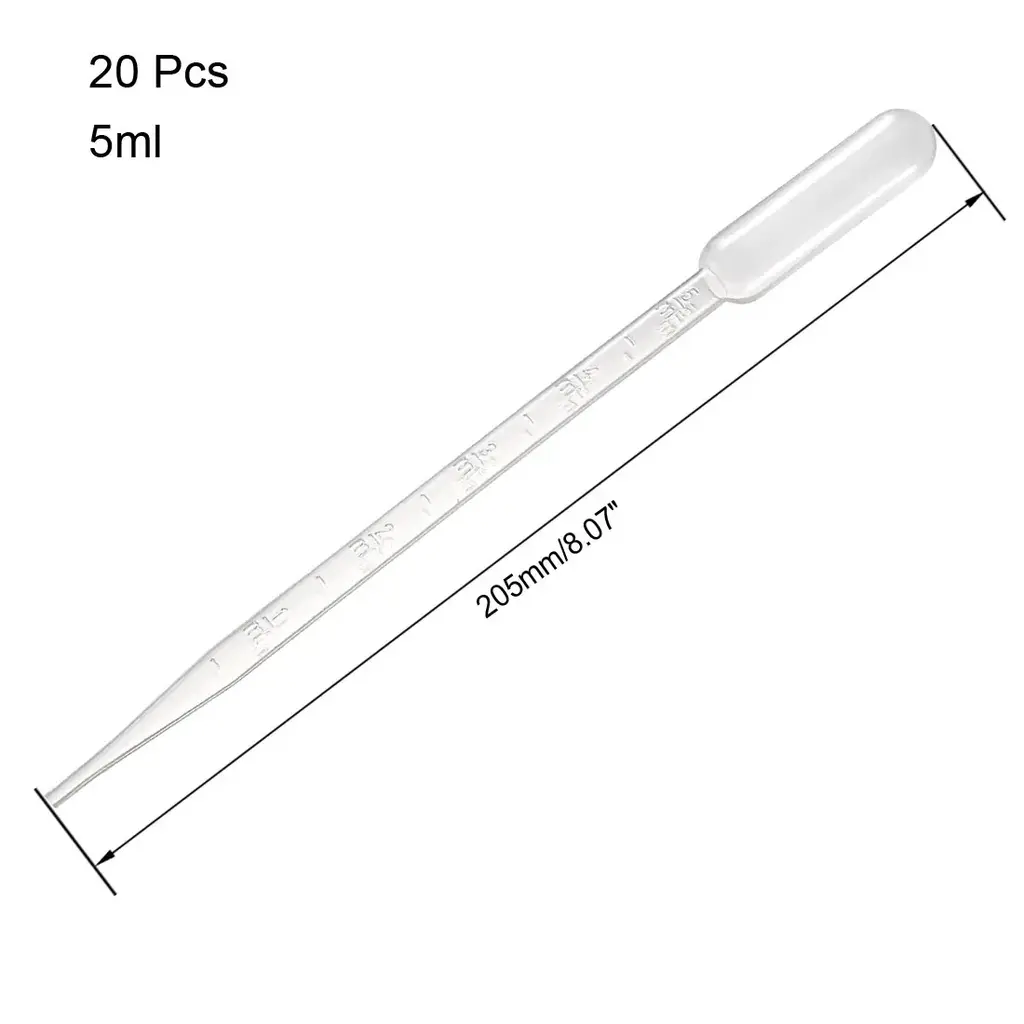 20 Pcs 5Ml Disposable Pasteur Pipettes Liquid Drop Droppers Graduated 205mm Long - Clear White - Clear White