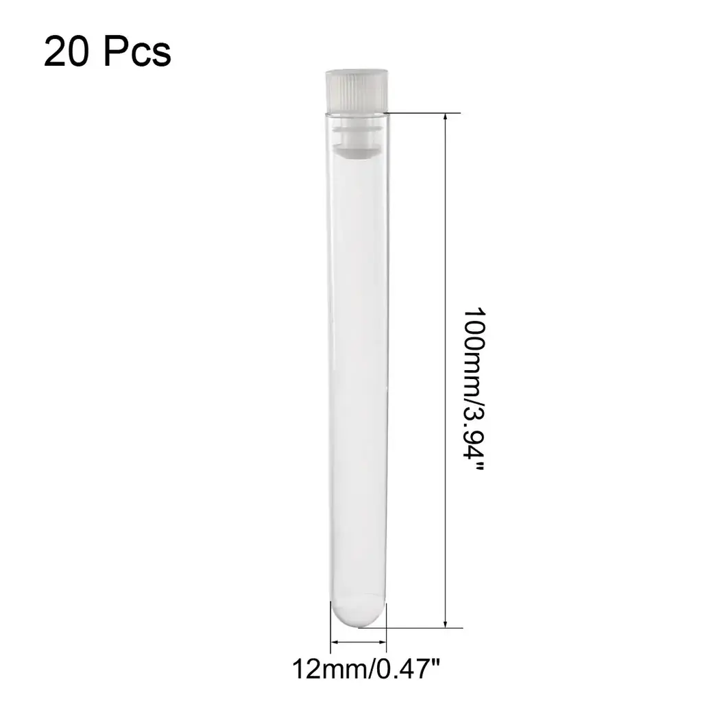20 Pcs Centrifuge Test Tubes Round Bottom Polystyrene With White Cap 12 X 100mm - Clear - Clear